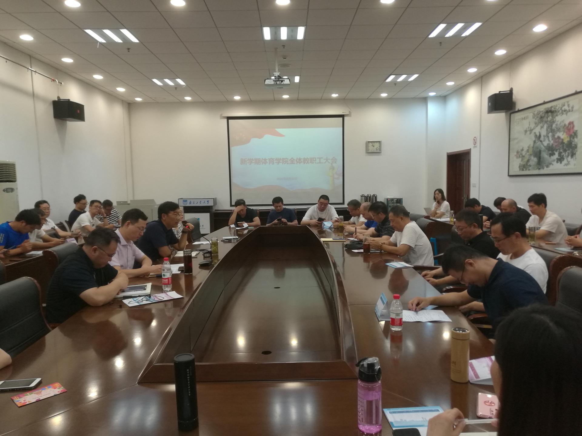 8月24日上午,太阳成集团tyc234cc在体育馆VIP3会议室召开新学期全体教职工大会。公司党政领导班子及全体教职工参加了会议。会议由张天峰经理主持。