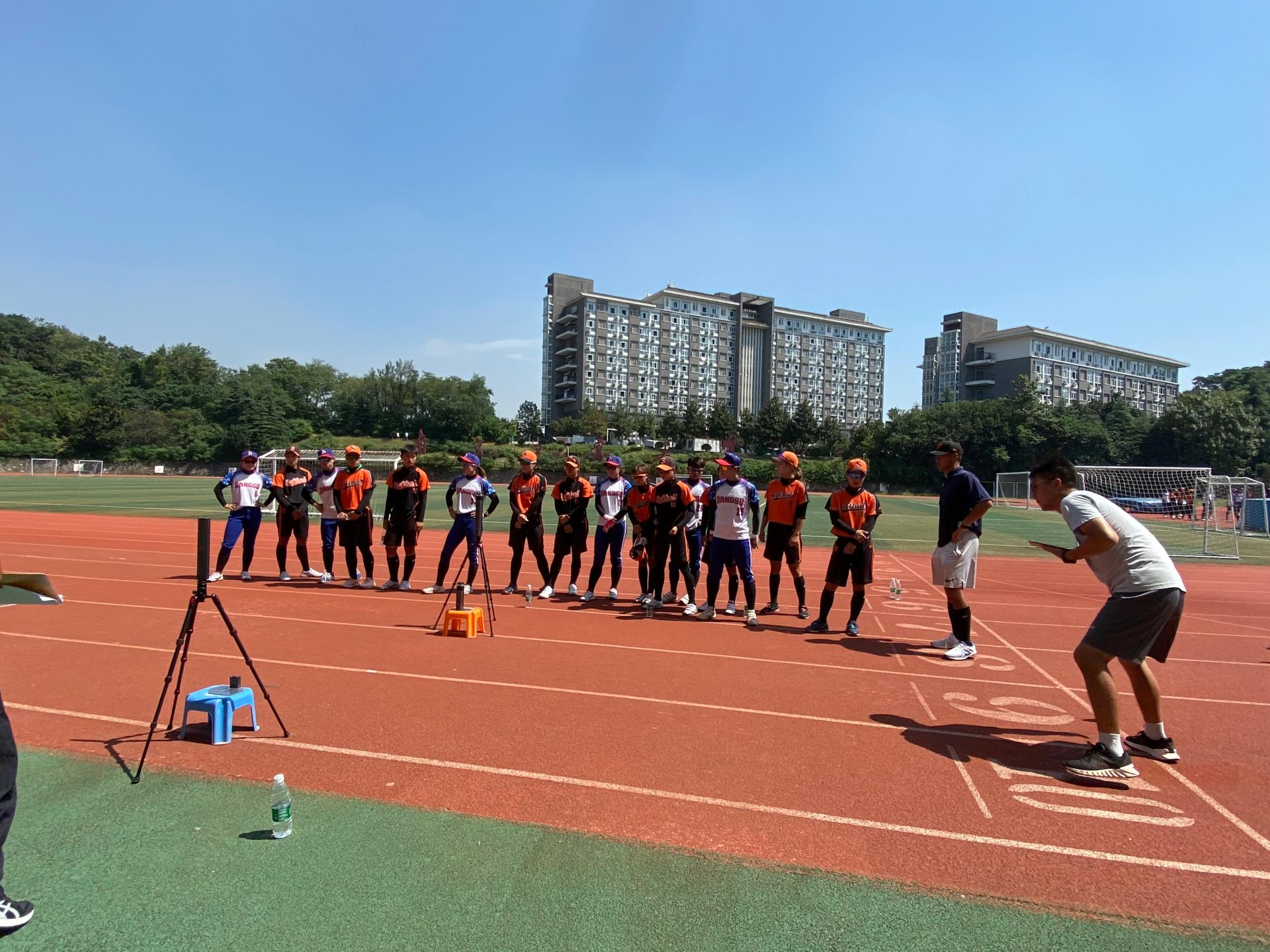 根据赛程安排,参加大比武的运动员的体能测试分为四部分,一、基础体能(全体测试六项):立定跳远、反手曲臂悬垂、背肌耐力、腹肌耐力、5-10-5灵敏性测试、3000米。基础体能测试从运动员的爆发力、速度、耐力、灵敏性等不同维度评估运动员的基础体能素质。二、专项体能(全体测试)1项:二垒跑;三、专项体能(场员测试)2项:立柱打远、上手掷远;四、专项体能(投手测试2项):球速、下手掷远。