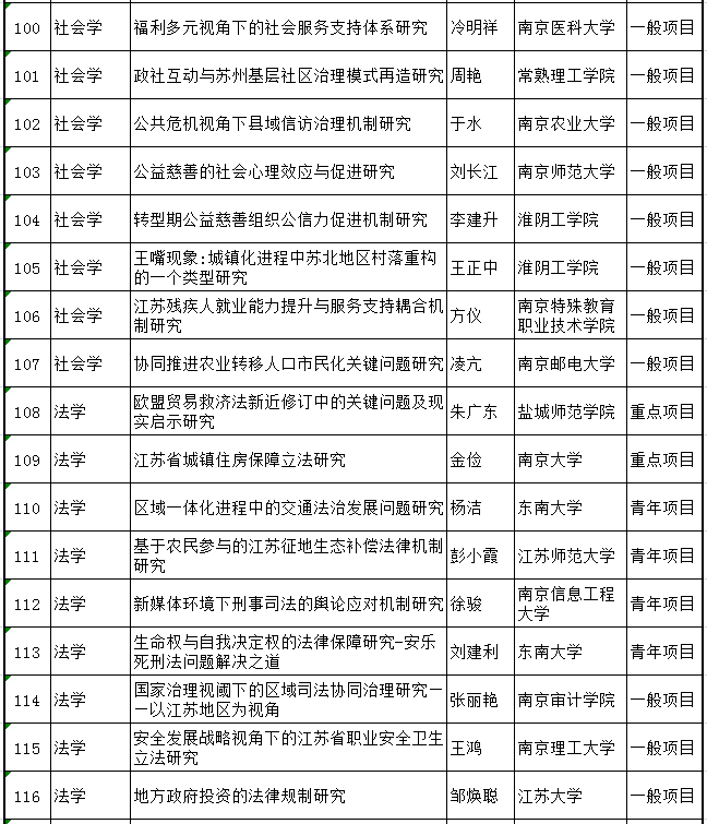 2014年度省社科基金项目已完成申报受理、通讯初评、会议评审等程序,经江苏省哲学社会科学规划领导小组审定同意,现将立项课题名单予以公布。