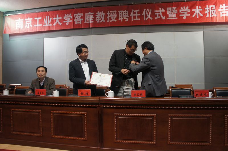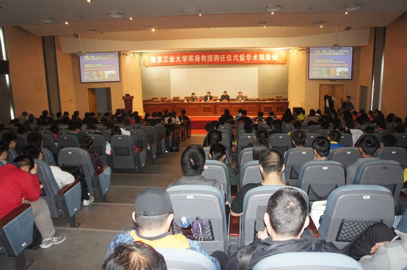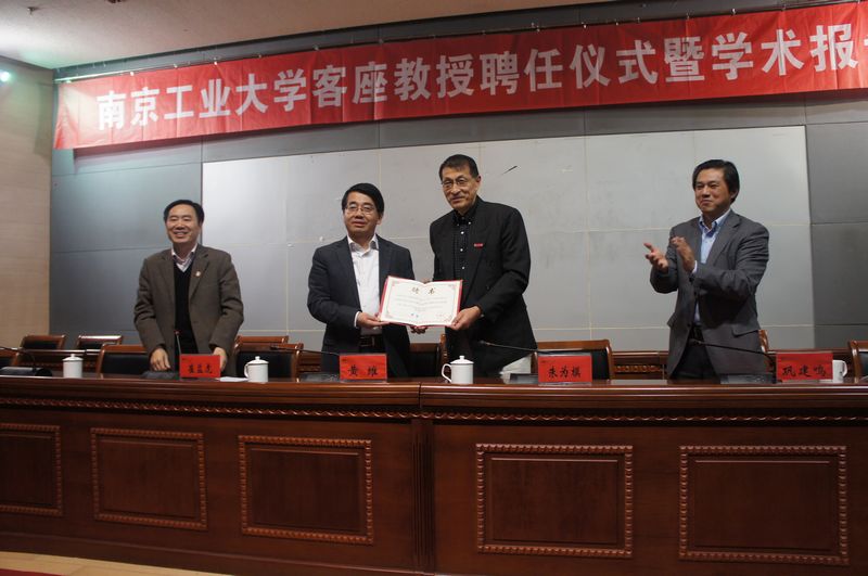 11月12日下午,美国伊利诺伊大学厄巴纳-香槟分校(University of Illinois at Urbana-Champaign)终身教授,博士生导师,朱为模教授受聘公司客座教授聘任仪式暨学术报告会在江浦校区图书馆一楼报告厅举行,董事长黄维院士、副董事长崔益虎教授、副董事长巩建鸣教授出席了聘任仪式。参加聘任仪式并聆听学术报告的还有校人才资源部常务副部长刘永福等职能部门领导,2011公司和体育部师生代表,共计200多人。