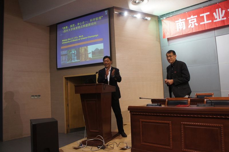 受聘仪式结束后,由体育部主任张天峰教授主持了朱为模教授学术报告会,朱为模教授为师生奉献了主题为“‘健康、强度、身心合一、科学管理’国外大学体育特点和最新动向”的学术讲座。他活跃并富于创新性的思维与严谨的治学态度,给师生留下了深刻印象。