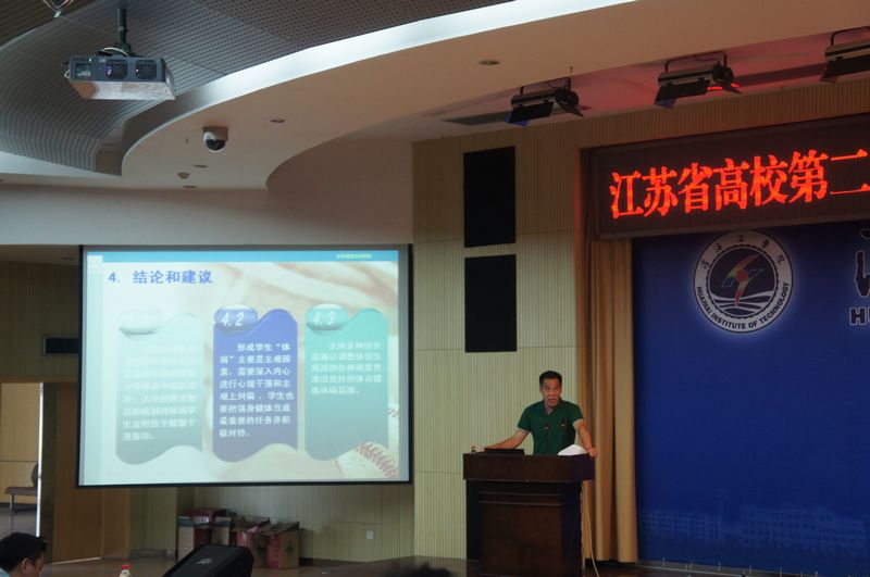 由江苏省高教学会高校体育研究委员会、江苏省体育科学学会高校体育学专业委员会主办的江苏省第28届高校体育科学报告会,于6月22日至6月23日在淮海工公司举行,参加本届体育科学报告会的有:获体育科学报告会优秀论文二等奖以上的作者代表、全省兄弟高校体育部主任、江苏省教育厅体卫艺处的领导等,共计150多人。期间,大家聆听了省内体育科学专家的主旨报告,一等奖论文作了大会交流、二等奖论文进行了墙报交流。