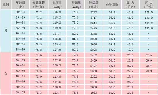 由于身体机能包含的内容广泛,测试的指标多样且复杂,多数是在实验室中利用精密仪器进行检测的。为了适应全国性大样本测试的需要,在国民体质监测中只能选择一些简单易行的指标,如安静心率、血压、肺活量、台阶试验等。这些指标在一定程度上反映身体心肺机能水平。