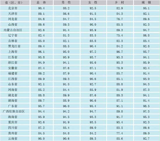 与2005年相比,全国有14个省(区、市)达到“合格”以上标准的人数比例有所增长、9个省(区、市)持平、8个省(区、市)有所降低。
