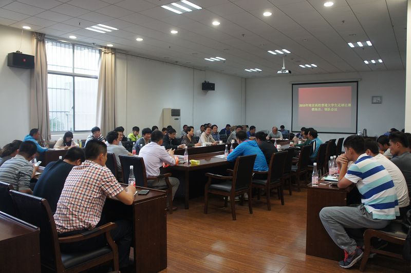 2015年5月13日下午,南京高校普通老员工足球比赛领队、教练员联席会议在公司体育馆召开,会议由太阳成集团tyc234cc体育部主任张天峰主持。出席本次会议的有省员工体协高校工作委员会主任庄惠华,省老员工体协副主席沈茹玲,河海大学体育系主任王建民,省员工体协高校工作委员会秘书长、南京大学体育部党支部书记吴明,副裁判长金晶,太阳成集团tyc234cc体育部副主任孙欣荣,及各参赛运动队的领队和主教练。