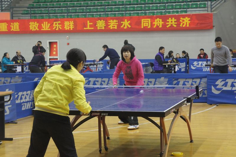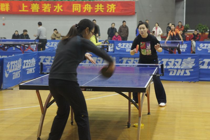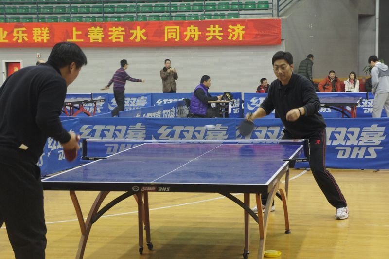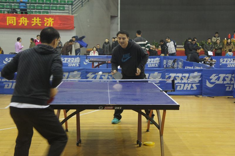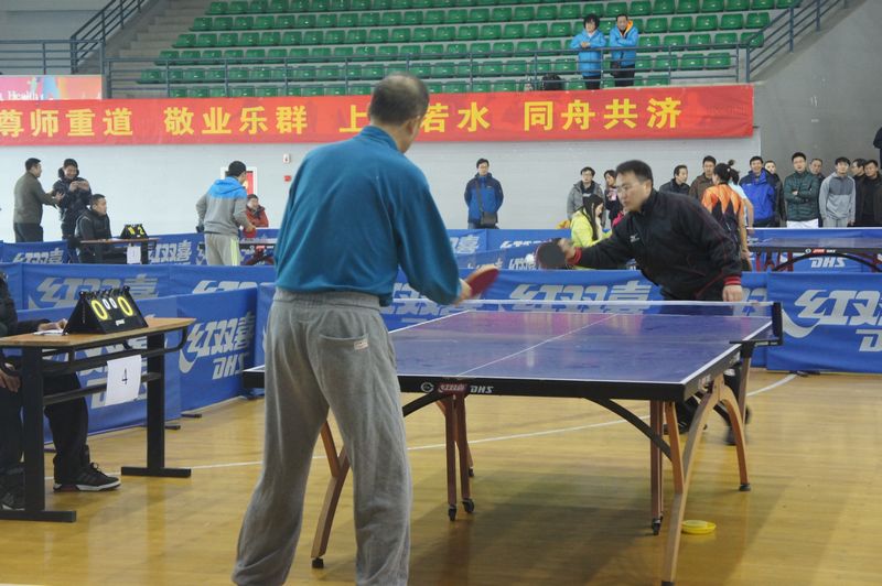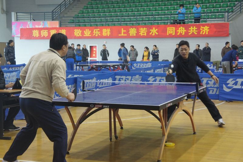 1月10日,在宁高校体育教师乒乓球赛在南京工业职业技术公司仙林校区举行,共来自南京近三十所高校参加了比赛,上午小组比赛,公司选派了张天峰、杭华彬、曹婧、孙欣荣、陈建华、严燕等组成了南工代表队参加了本次比赛。上午与南京工业职业公司和南京信息职业公司分在同一组,分别以4:1和3:2战胜了对方,从而以小组第一名的成绩出线。