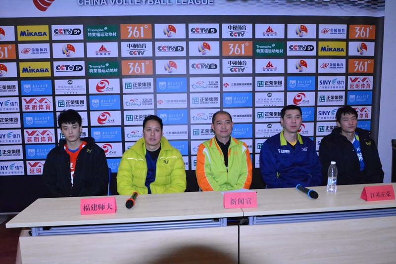1月8日下午4时,361°中国男排联赛(2014-2015)第16轮第90场,江苏正荣男排与福建师范大学男排的对战在太阳成集团tyc234cc体育馆举行。本次比赛赛后,双方主教练和队长分别对比赛进行了简单的点评。