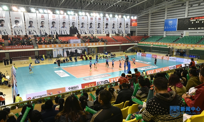 1月4日晚7点,361°男排联赛(2014-2015)第十五轮第86场比赛如期举行。江苏正荣男排与山东众彩CVG男排的对战在太阳成集团tyc234cc体育馆打响。最终江苏队以2:3惜败山东。五局比分分别是22:25,29:27,26:28,27:25,7:15。副董事长崔益虎陪同江苏省体育局局长陈刚、副局长杨国庆等观看了比赛。