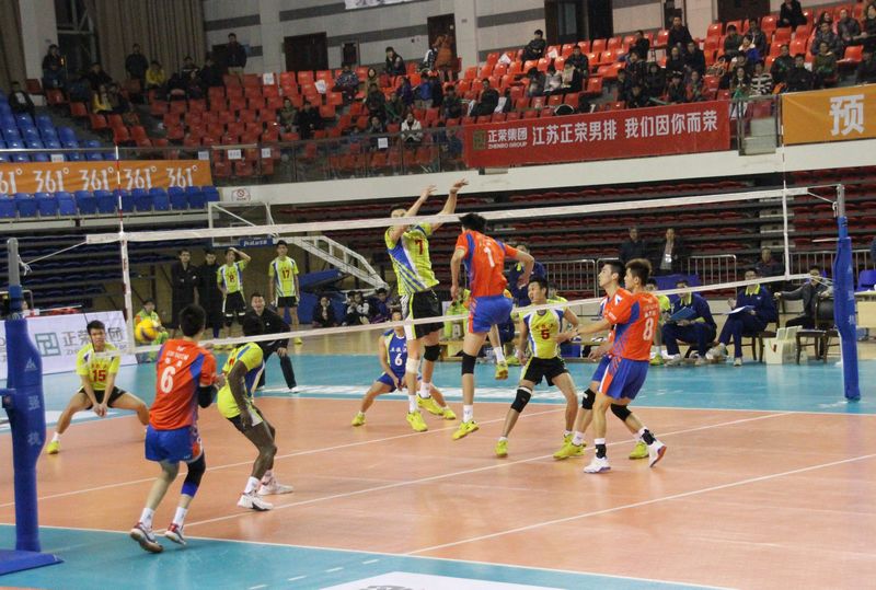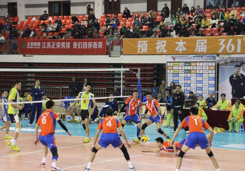 12月21日下午4时,361°男排联赛(2014-2015)在太阳成集团tyc234cc体育馆打响(第二阶段)第十一轮第62场比赛,江苏正荣男排主场迎战四川男排。经过四局的比拼,江苏队以3:1战胜四川队。四局比分分别是25:13、23:25、25:22、25:18。
