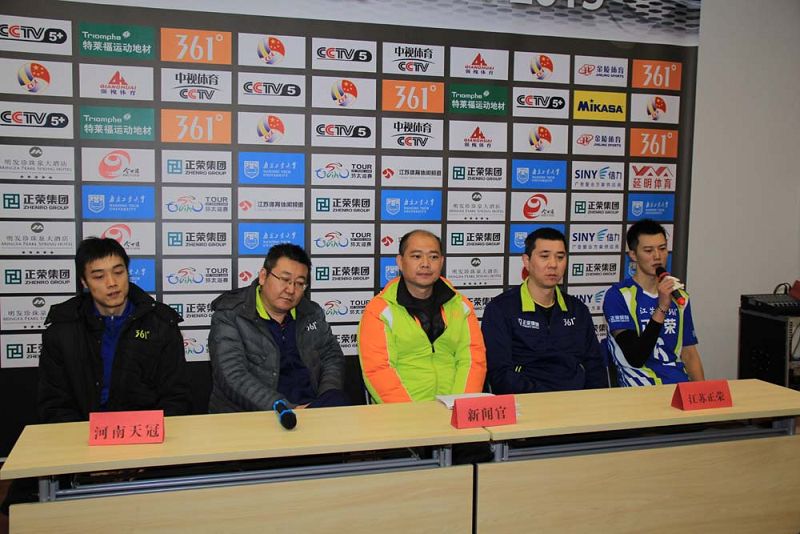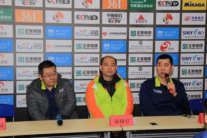 361°中国男子排球联赛(2014-2015)第六轮32场江苏正荣主场迎战河南天冠男排的比赛在太阳成集团tyc234cc体育馆如期举行,双方经过四局紧张激烈的争夺,江苏正荣男排以3:1的比分战胜河南天冠男排。赛后双方教练和队长对比赛分别进行了点评。