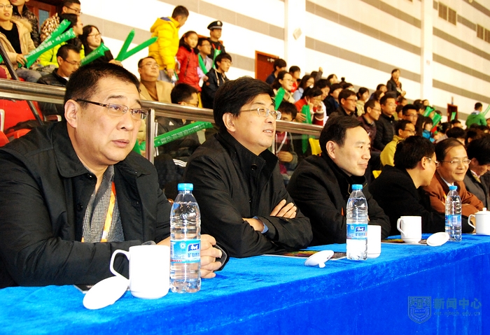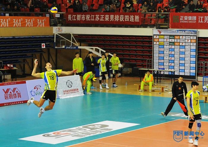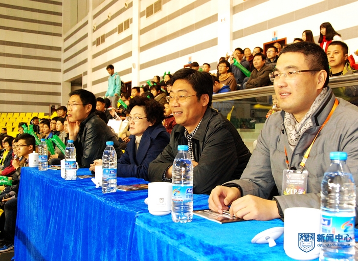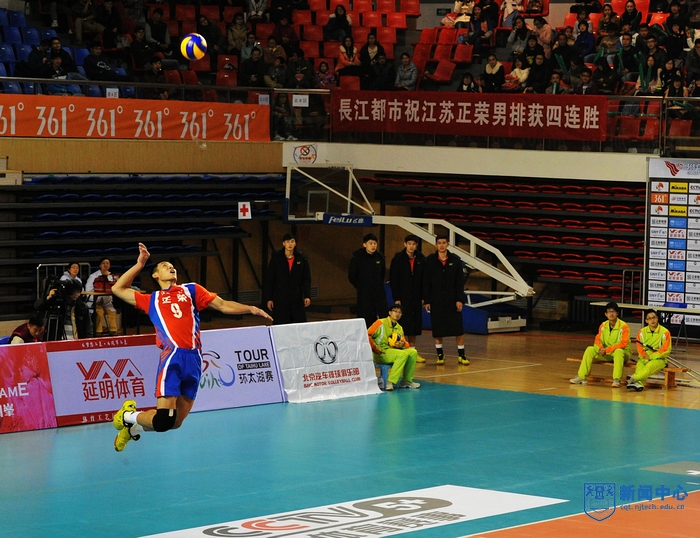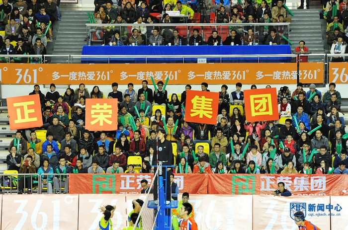 11月30日,361°中国男排联赛(2014-2015)第五轮第26场比赛,江苏正荣男排主场在公司江浦体育馆与北京汽车男排展开第五轮对决。校分管体育工作的副董事长崔益虎,江苏省体育局副局长杨国庆,江苏省体育竞赛管理中心主任陈小平,江苏省体育竞赛管理中心书记、副主任刘斌,江苏省体育局竞技处处长陶新,校人力资源部常务副部长董军,校体育部主任张天峰、党总支书记陈建华等和现场的2000多名观众一起观看了比赛。