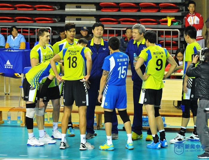 第四局,江苏队刘向东打手出界以比分2:1赶超北京队。江苏队猛烈进攻,北京队即刻双人拦网反击,双方均不肯丢失一分,但李晨和周鸿双人拦网成功,比分7:6。北京队接连三次失误,江苏队连得3分,张晨立马展开攻势,强攻又夺得一分,江苏队以4分优势拉开比分至13:9。江苏队保持出色表现,张晨和方浩宇再次双人拦网得分,大比分16:12进入第二次技术暂停。随着方浩宇成功的扣球得分,比分24:20达到局点,北京队发球失误出界,江苏队再得一分,并以25:23拿下第四局。局分2:2,双方战平。