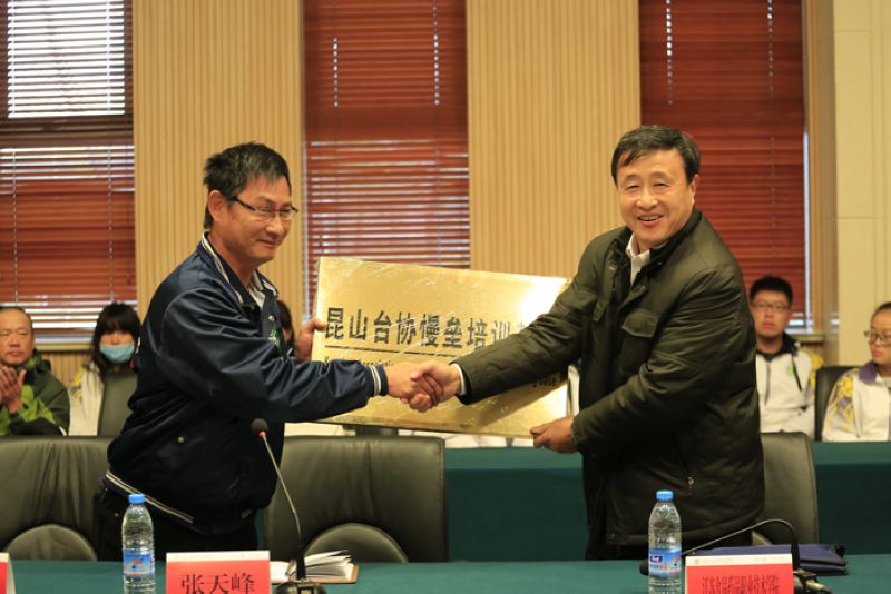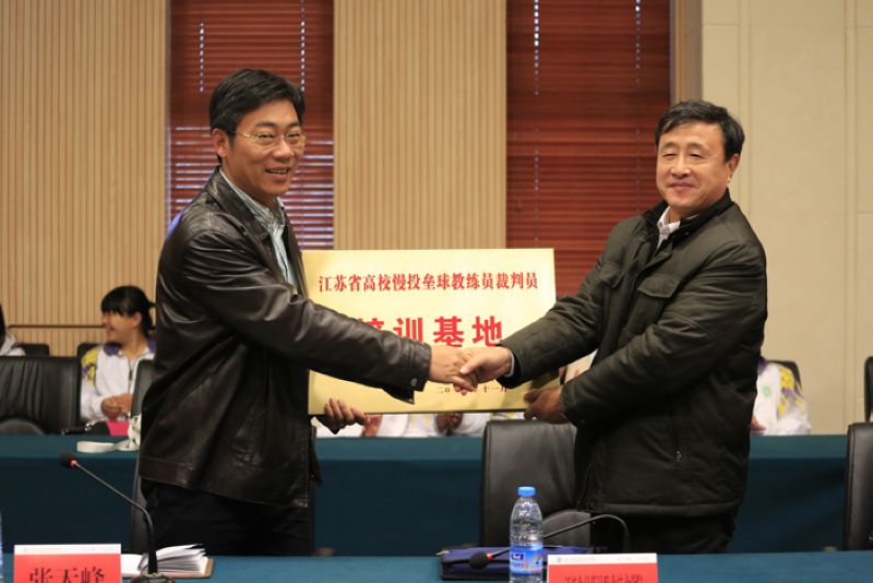 开班仪式上,江苏省老员工体育协会棒垒球分会副会长张天峰向食品药品公司授予“江苏省高校慢投垒球教练员裁判员培训基地”铜牌;昆山台商慢投垒球联盟会长黄国斌授予该院“昆山台协慢垒培训基地”铜牌,并赞助价值5000元的训练辅助器材。