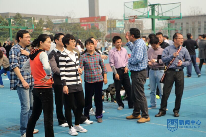 两点,比赛正式开始。老师们奋勇争先,比赛场地气氛热烈而轻松,从人群中不时传出阵阵掌声和欢笑声。经管院代表队是第一组中第五支比赛的队伍,前四支代表队都取得了不错的成绩,经管院老师们的压力也逐渐增大,他们聚在一起商量对策,紧张而专注。终于到我们经管代表队,虽然有一些小失误,但老师们及时调整,保持良好心态。比赛结束,尽管遗憾现场发挥不如热身准备时顺利,但老师们奋力拼搏、团结协作的体育精神值得学习!