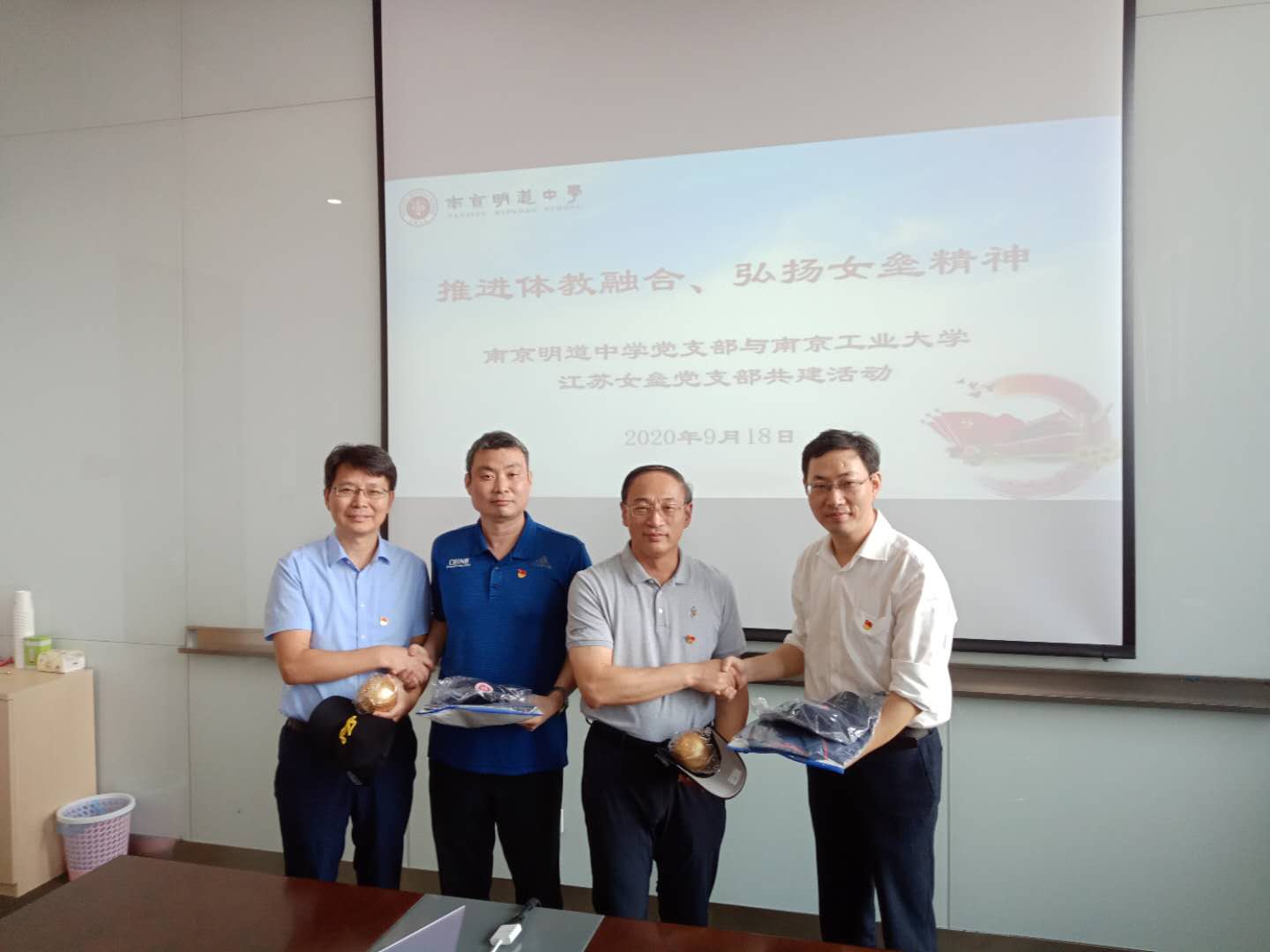 9月18日下午,南工大-江苏女垒党支部赴南京明道中学参观调研,并和南京明道中学党支部联合举办了“推进体教融合 弘扬女垒精神”的主题党日活动。活动由南京明道中学副董事长毛利群主持,两个支部全体成员参加了活动。
