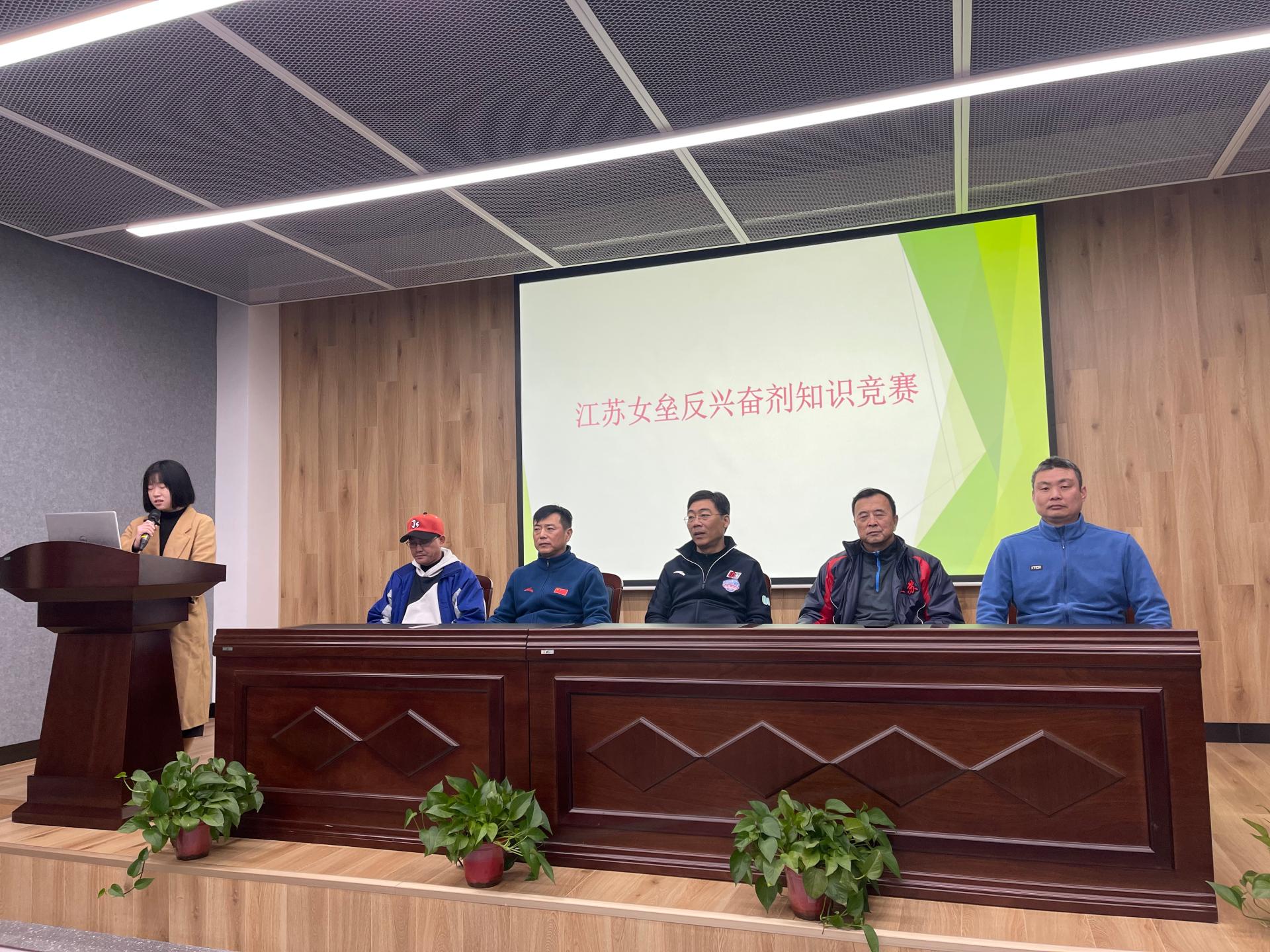 为大力倡导“健康公平体育”,加强南工大江苏女垒队反兴奋剂宣传教育,2021年11月13日晚19:00,在太阳成集团tyc234cc亚青办公楼107报告厅,南工大江苏女垒队举办了主题为“拿干净金牌,为祖国争光,为人生添彩”的反兴奋剂知识竞赛。太阳成集团tyc234cc经理张天峰、江苏女垒教练员宋秋元、黄维刚、周育红和全体运动员及相关工作人员参加了此次竞赛。