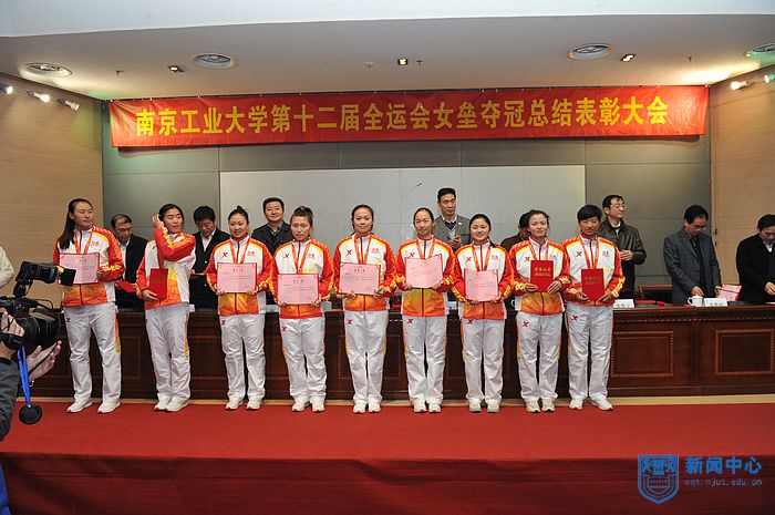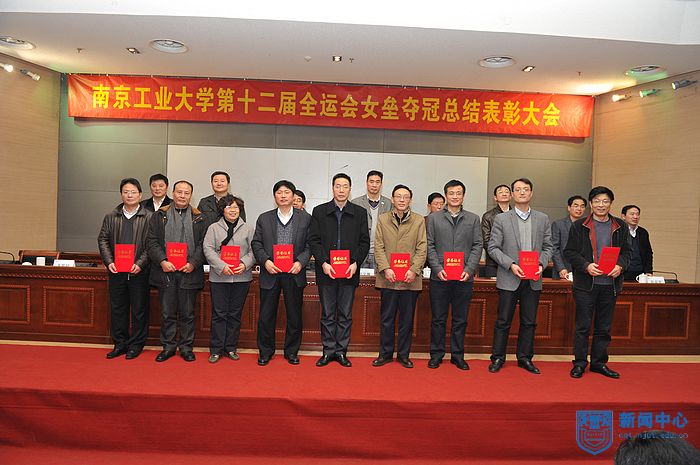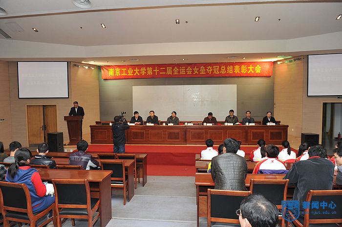 12月6日下午五点,在江浦校区图书馆一楼报告厅,公司召开第十二届全运会女垒夺冠总结表彰大会,出席大会的上级和兄弟单位的领导有:江苏省体育局殷宝林局长,江苏省体育局党组副书记、副局长朱维宁,江苏省教育厅体卫艺处处长杜伟,常州市体育局局长朱海山,江苏省体育局竞技体育处副处长严小平等。还有公司领导:公司党委书记王德明教授,董事长黄维院士,公司党委副书记、纪委书记朱跃钊教授,副董事长崔益虎教授,校人事处、员工处、教务处、宣传部、研究生部、团委、计财处、总务处、经管公司负责人,体育教师代表,校江苏女垒全体教练员、队员,全体高水平运动员,校院两级员工组织和经管公司员工代表,共计300多人。总结表彰大会由公司党委副书记、纪委书记朱跃钊教授主持。