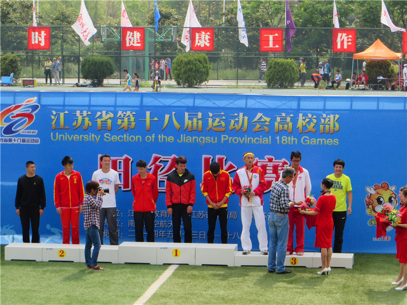 5月15日—18日,江苏省第十八届运动会高校部甲组田径比赛在南京航空航天大学江宁校区体育场举行。本次比赛由省教育厅和省体育局主办,南京航空航天大学承办,全省共有42所本科院校的789名运动员参赛。本次比赛启用了蓝色跑道和具有青奥会级别的体育器材,调用了裁判近100人,其中将要参加南京青奥会的裁判近30人,为本次比赛的顺利进行提供了有力保障。