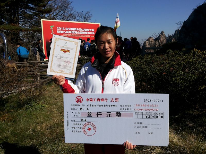 尹兰兰荣获第九届黄山国际登山大会高校组女子个人第一名,田径队荣获高校组团体第三名