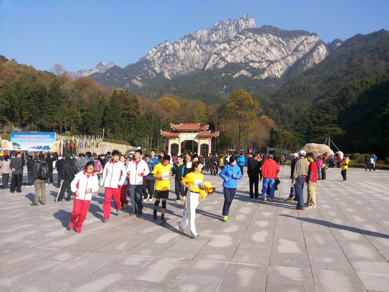 11月18日全国群众登山健身大会暨第九届黄山国际登山大会拉开帷幕。此次登山大会以黄山南大门多功能广场为起点,经黄山云谷寺到达海拔1600多米的黄山北海广场终点止,全程12公里。本届大会以 “美丽中国,从黄山出发” 为主题。黄山市著名运动员、2013年第十二届全运会女子20公里竞走冠军吕秀芝女士领跑本次大会。