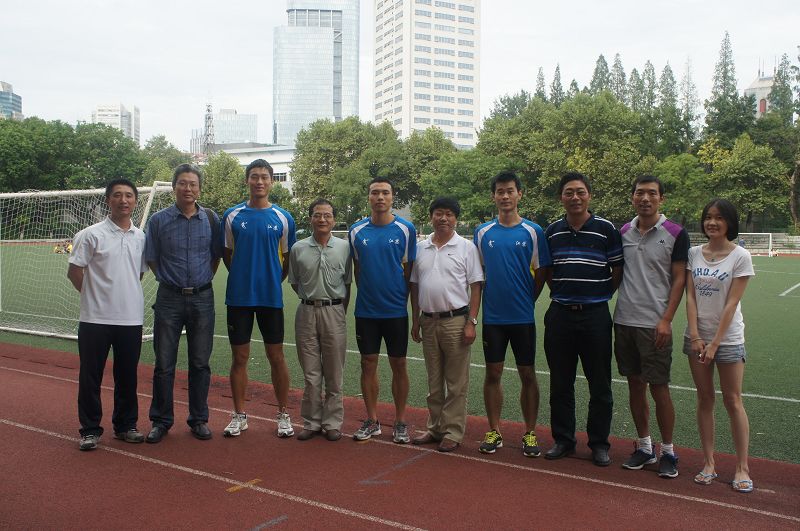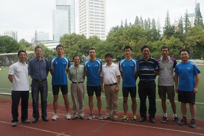 为了备战9月8日在天津举行的第九届全国老员工运动会,校老员工田径队入选江苏代表团参加本届大运会的王胜亚(短跑)、苏中峰(短跑)、査松山(跳跃)、孔庆文(标枪)等四位队员在教练员於鹏、张铭等二位老师带领下,放弃了休息,冒着高温,利用假期坚持在南京大学本部田径场刻苦训练,为比赛做最后的冲刺。