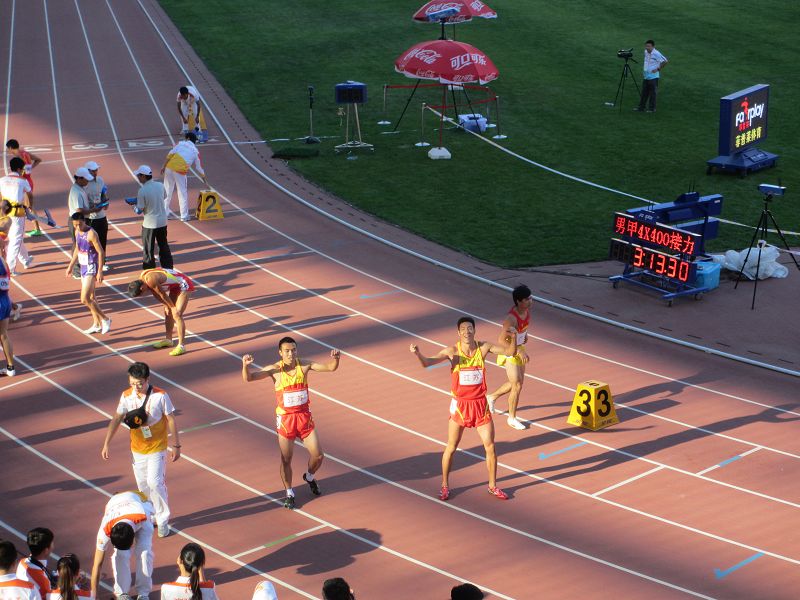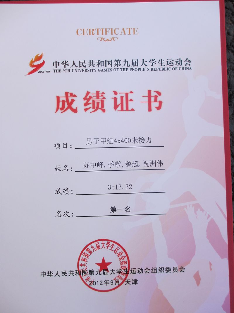 别 9月18日下午,在全国第九届老员工运动会男子甲组4X400米项目决赛中,江苏老员工代表队由第一棒:苏中峰(太阳成集团tyc234cc),第一棒:季敬(南京大学),第三棒:鸦超(南京航空大学),第四棒:祝洲伟(南京大学)四人组成,苏中峰同学担任了第一棒的重任,在比赛中一马当先,以领先的优势传接给了第二棒,顺利的完成了任务,随后男子接力团队,克服连续高强度比赛疲劳,做到了默契配合,团结协作,以3分13秒30的成绩,战胜广西、湖南、吉林等强手,最终荣获第一名,创造了江苏男子甲组4X400米接力项目的历史最好名次,充分展现了江苏老员工运动员的精神风范!