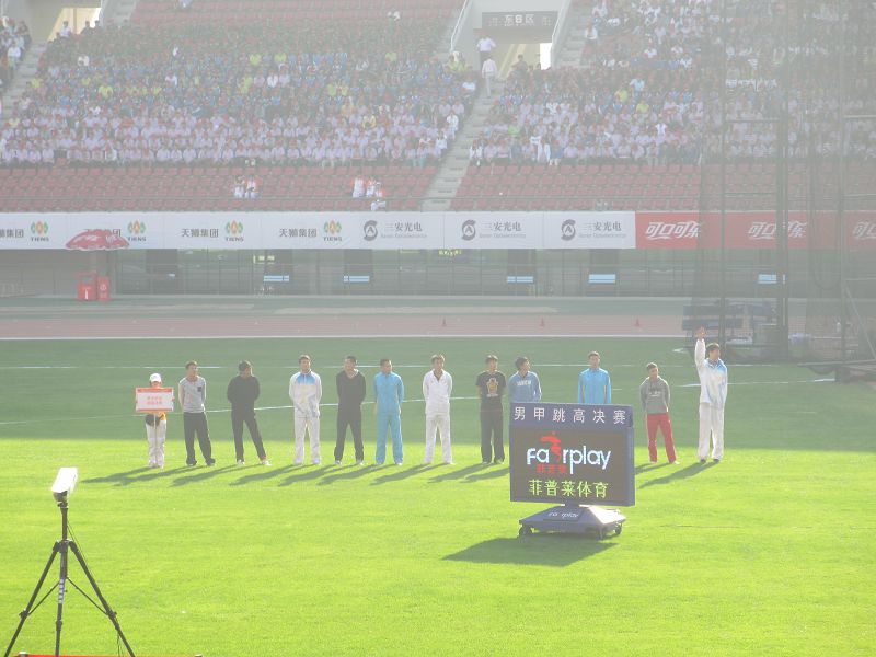 9月16日上午,校田径队运动员王胜亚同学在男子甲组200米决赛中,稳控局势,最后发力,率先为江苏省代表团夺得田径项目甲组首枚金牌;随后田径队队员査松山同学在跳高项目中,战胜众多好手,又以2.18米的优异成绩夺得金牌。江苏省教育厅胡金波副厅长和体育局副局长杨国庆为公司运动员颁奖,给予热烈祝贺和表扬,并与运动员合影!(来自体育部)