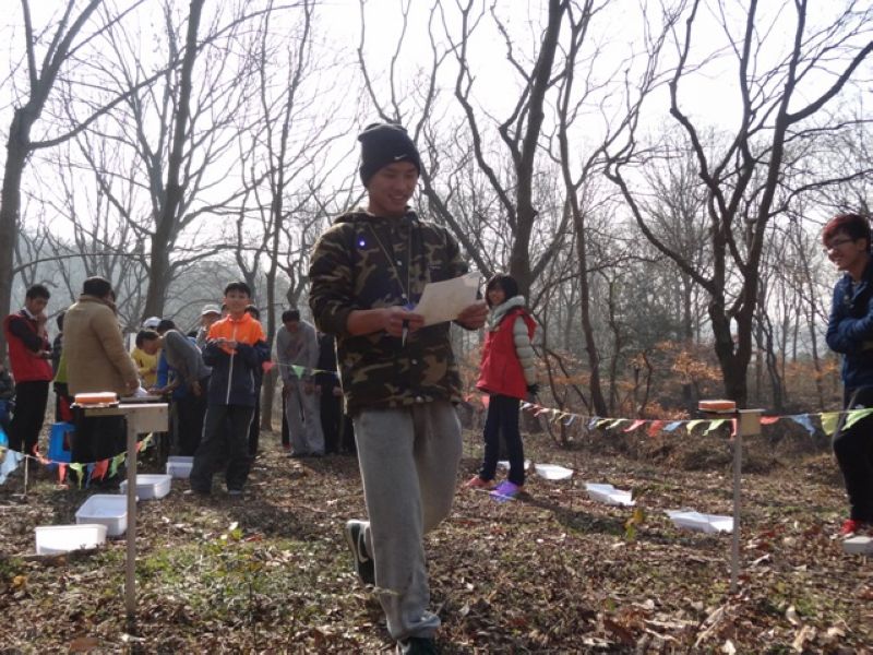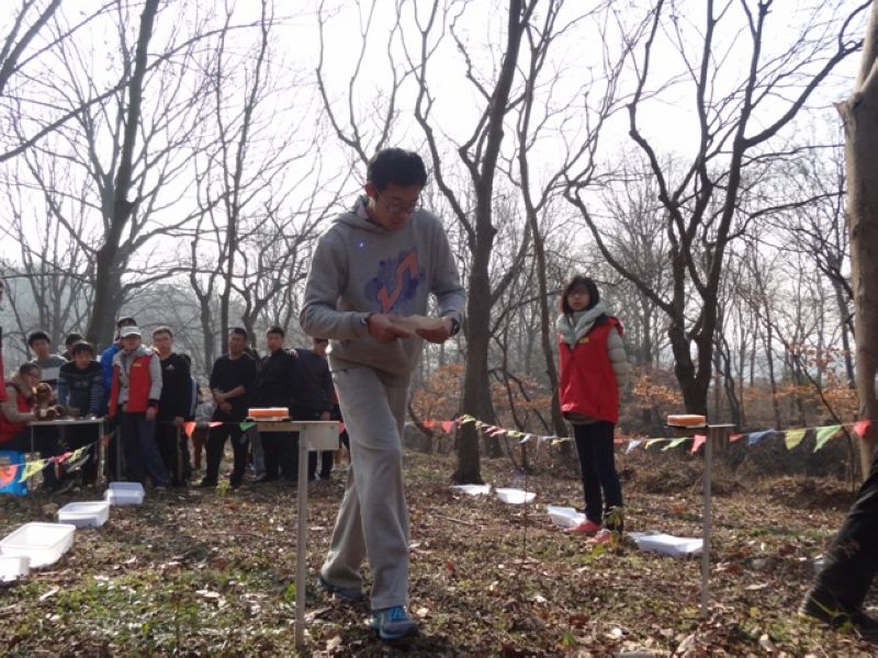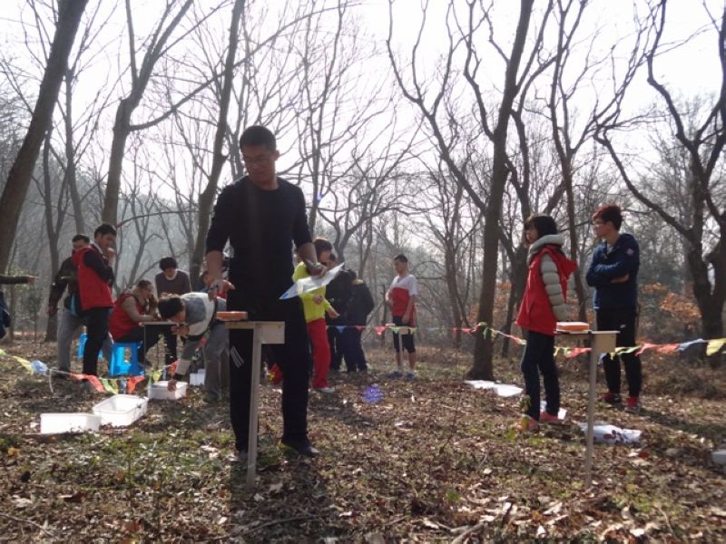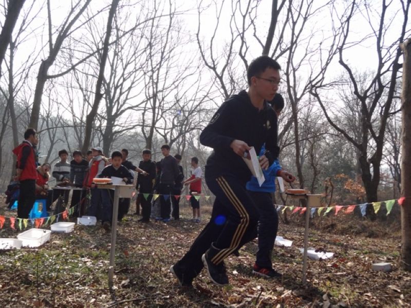 接下来的重头戏,队员个个生龙活虎,打了起点后,却第一个点就找不着,他们一次次地定方位,一次次地瞄准目标,可就像着了魔似的,苦寻无果。比赛终归是比赛,虽然队员平时关系好得很,可在比赛时都自觉遵守游戏规则,坚持做到“不问,不打听,不跟跑”,第一个点就给队员们来了个下马威。慢慢地队员适应了比赛难度,越跑越有信心,定位和瞄点一个个目标。冬季的中山陵,漫山落叶,无疑提高了比赛的难度,很多小路没了踪迹,跑在铺满了落叶的山间小径,多了几分的危险。