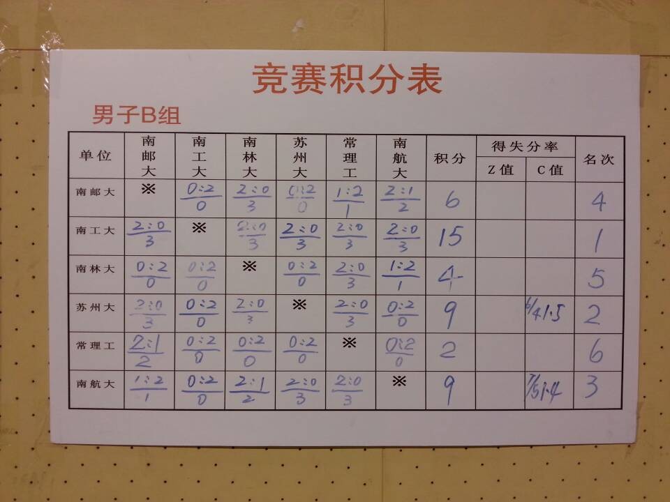 在分组赛中,校员工男子排球队以小组第一进入了交叉赛,在交叉赛中,战胜了实力强劲的三江公司队和南京航空航天大学队,最终于4月21日下午与苏州大学队相遇,进行了冠军争夺赛,经过一个半小时的紧张而激烈的对抗,最终惜败对手,荣获了本次比赛亚军。同时被组委会评为“体育道德风尚运动队”称号。
