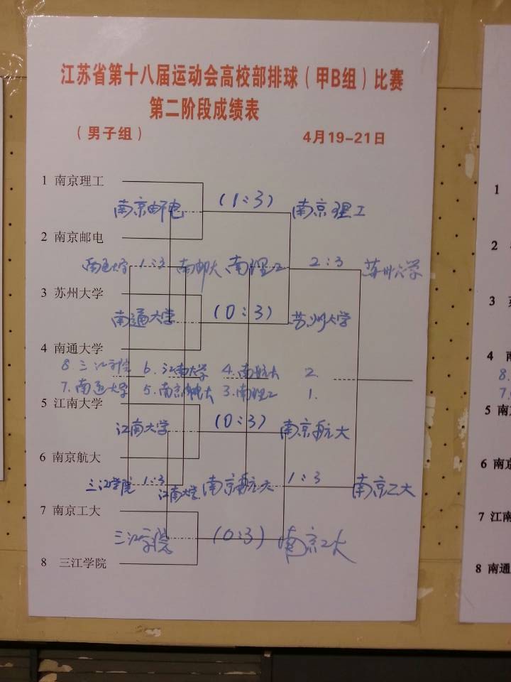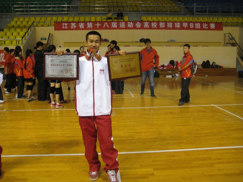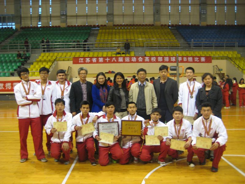 4月16日至21日,由江苏省教育厅、江苏省体育局主办,江苏省员工体育协会高校工作委员会协办、江苏大学承办的“江苏省十八届运动会(高校甲B)排球赛”在江苏大学体育馆举行,共来自江苏高校的15支队伍参加。本次比赛男女各分两个组,先组内单循环,各小组取前四名进决赛,再进行交叉赛。校员工男子排球队在领队侯桂明、主教练于炳德老师率领下参加了比赛。