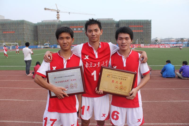 在整个赛期内,公司共15队员挤在一室一厅的房子里,条件虽然艰苦,但队员们苦中作乐,勇往直前,始终保持着高昂的斗志,积极的心态!洒下的汗水终成花,努力终得回报,队员们不负公司领导和师生的期望,不负教练的悉心教导,不负自己的努力拼搏,赢得了江苏省十八届运动会(高校部)足球比赛的第三名,为自己争光,为公司添彩!(来自校老员工男子足球队)