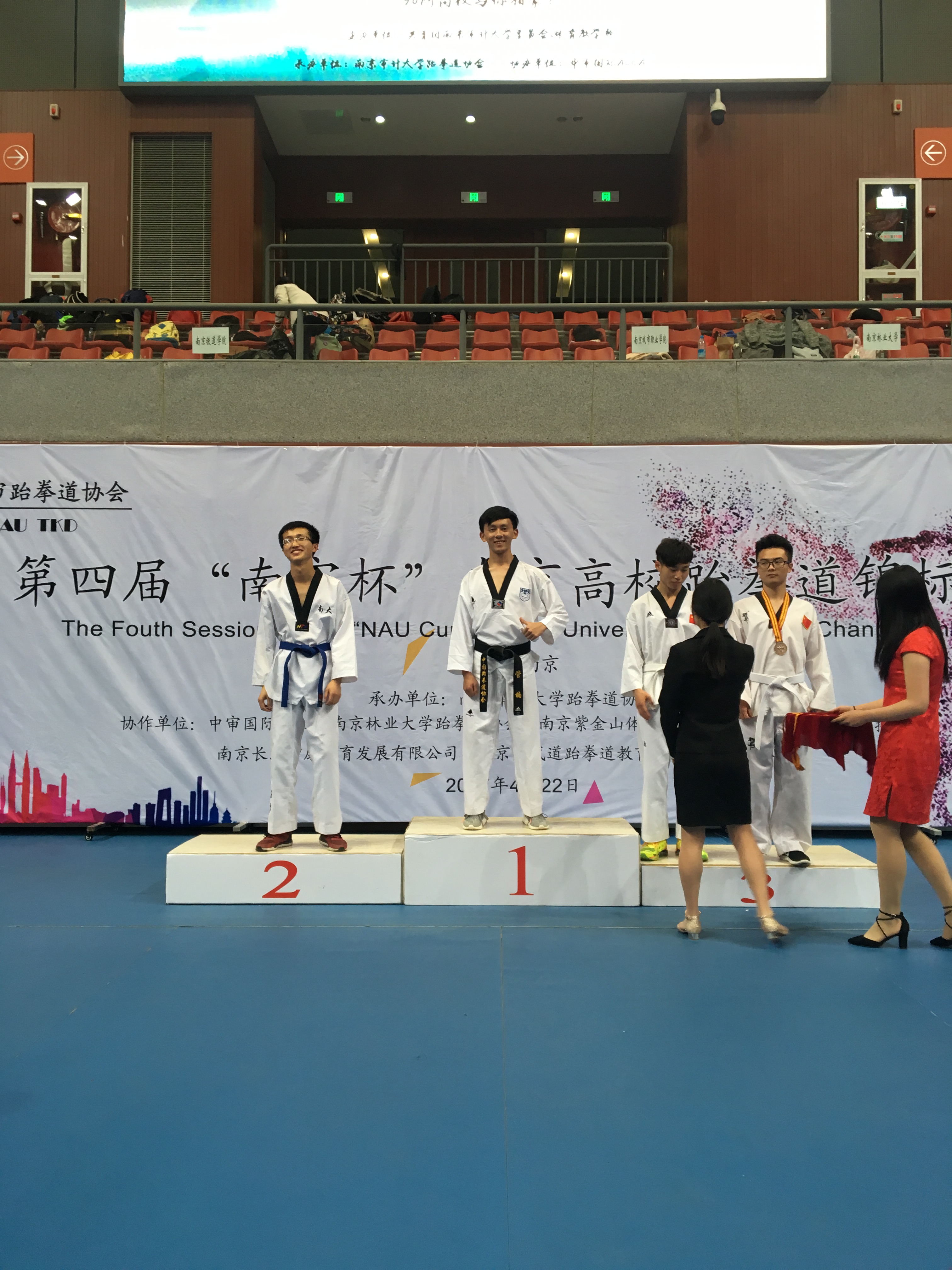 校跆拳道队,在李佳静老师与沈雨老师带领下,校队进行一周三次的基础腿法与实战技巧的学习,诸多无跆拳道基础的队员在近一年的训练中取得了十分显著的进步。此次比赛在带队教练指导下,队员们努力克服参赛经验的不足,在比赛场上努力拼搏,其中几场关键比赛都是反败为胜对手实力很强,虽然赢了比赛,但过程极其艰难,本次比赛全体队员体现了南工学子不畏艰难,敢于拼搏的精神!