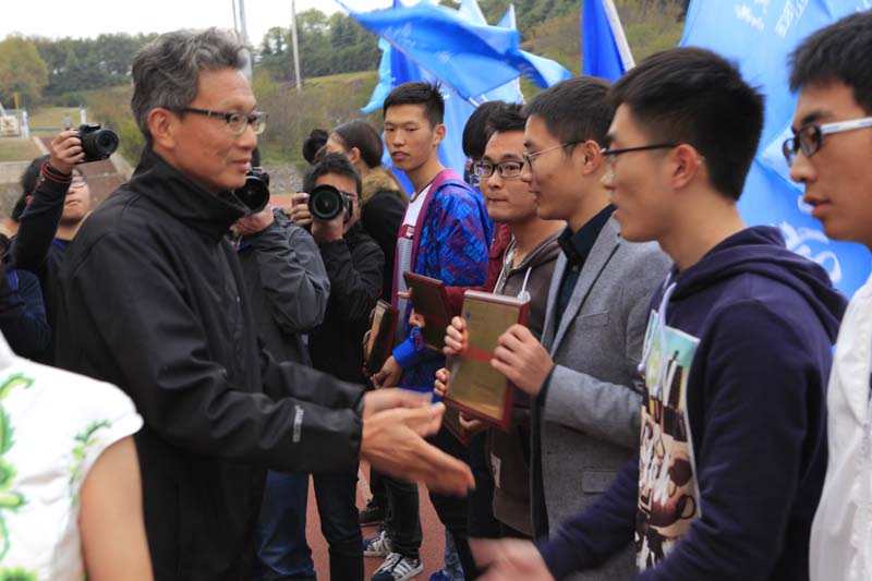 颁奖后,校体育运动委员会主任、副董事长崔益虎教授宣布校第十三届运动会闭幕。(来自体育部)