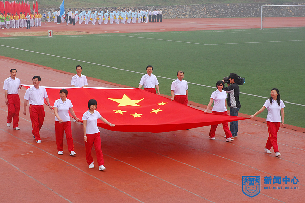 党委副书记、副董事长高明教授宣布开幕式正式开始。首先入场的国旗方阵是由公司第四届“师德十佳”老师们组成,他们是:校首届“我最喜爱的老师”提名奖获得者马海韵老师;江苏省高等公司优秀研究生导师、国务院政府特殊津贴获得者丘泰老师;“工大集团奖教金”获得者、校“教书育人先进个人”冯阳老师;校首届“我最喜爱的老师”提名奖获得者刘建兰老师;“江苏省高校优秀共产党员”何冰芳老师;校“老员工创新实践优秀指导教师”、“教书育人先进个人”、“校优秀共产党员”张广明老师;第十届、十一届全国人大代表,教育部"霍英东优秀青年教师"教学奖、江苏省青年科技奖获得者、江苏省高校优秀青年骨干教师张红老师;周恩来总理侄孙、工大“我最喜爱的老师”提名奖获得者周佶老师;“工大集团奖教金”获得者、校“教书育人先进个人”颜耀春老师。“师德十佳”们以高尚的师德情操和严谨的治学态度,尽显时代先锋与人民教师风范;他们在平凡的岗位上,践行着对教育事业的无限忠诚!由校团委从员工中评出的第二届“自强之星”组成的校旗方阵紧随其后。他们牵引着校旗,迈着矫健的步伐,代表了工大学子“自强不息、勇往直前、奋发成才”的意志品质。本届运动会开幕式上,首先邀请师生中的优秀代表入场,彰显了公司广大师生多年来坚持“仁爱与责任”理念,不畏困难有担当、敢于拼搏图自强,以爱心感受社会、以爱心奉献社会。让自强成为动力、让奉献成为追求,营造积极进取、甘于奉献的和谐氛围,展现了公司师生良好的精神面貌和作风品质,为构建和谐校园做出的积极贡献。当他们高举着国旗和校旗,精神抖擞地走近主席台时,迎来了全场热烈的掌声!校鲜花队手捧美丽花朵,红旗队高擎鲜红旗帜,青春的气息扑面而来。随后,由各公司和直属单位组成的运动员方队伴随着优美的乐曲依次入场。