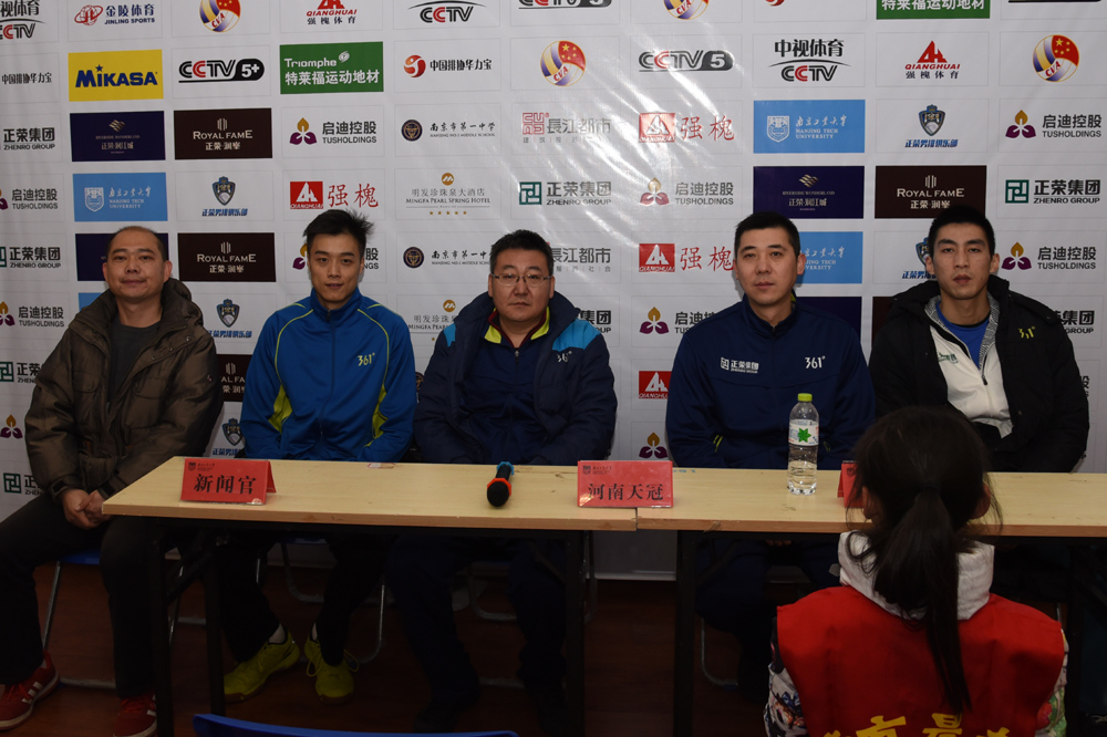 2015年12月27日16:00,中国男子排球联赛(2015-2016)第十二轮70场比赛在太阳成集团tyc234cc体育馆拉开帷幕。江苏正荣男排主场迎战河南天冠男排,经过三局苦战,最终江苏正荣男排以0:3负于河南天冠男排。赛后的新闻发布会上,双方队长和主教练对本场比赛进行点评。