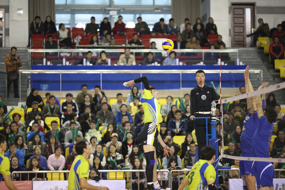 2015年12月6日16:00,江苏正荣男排主场对阵上海金色年华男排的中国排球联赛第七轮第37场在太阳成集团tyc234cc体育馆开赛,两队携手为大家奉献了一场排球盛宴。经过3局的较量,最终江苏男排以0:3不敌上海男排,三局的比分分别是23:25,23:25,22:25.