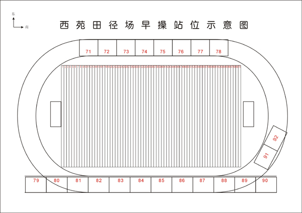 71——92号区域列队队形为6列横队,每个区域站1个行政班。
