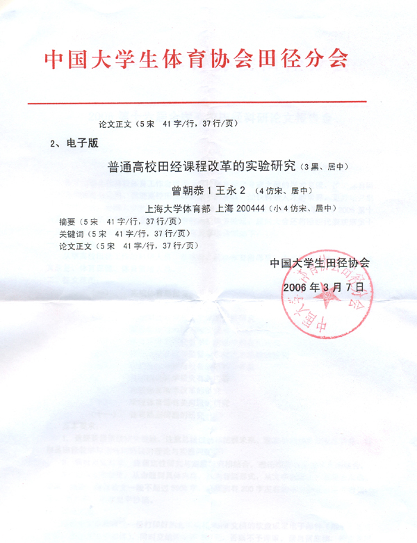 2006第十六届全国高校田径科研论文报告会征文通知