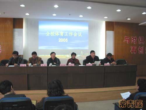 3月25日下午,在虹桥校区图书馆六楼报告厅召开了全校体育工作会议,大会总结、回顾了2004年全校体育工作,表彰了在2004年度公司体育工作取得优异成绩的先进集体和先进个人、优秀教练员,公司党委副书记吴建华、副董事长王建明出席了大会。会议由校体育运动委员会副主任、校工会主席潘桐山主持,校体育运动委员会全体成员和各单位分工会主席、各公司分团委书记、员工和教职工的各体育社团、协会负责人等200多人参加了会议。