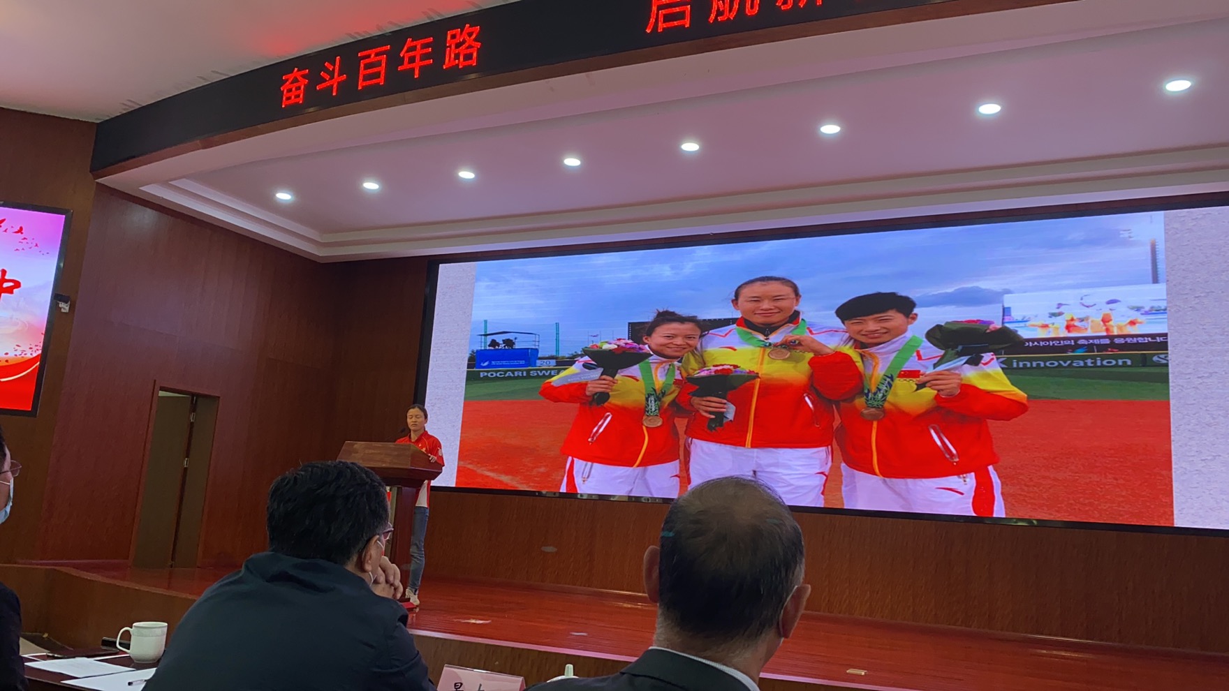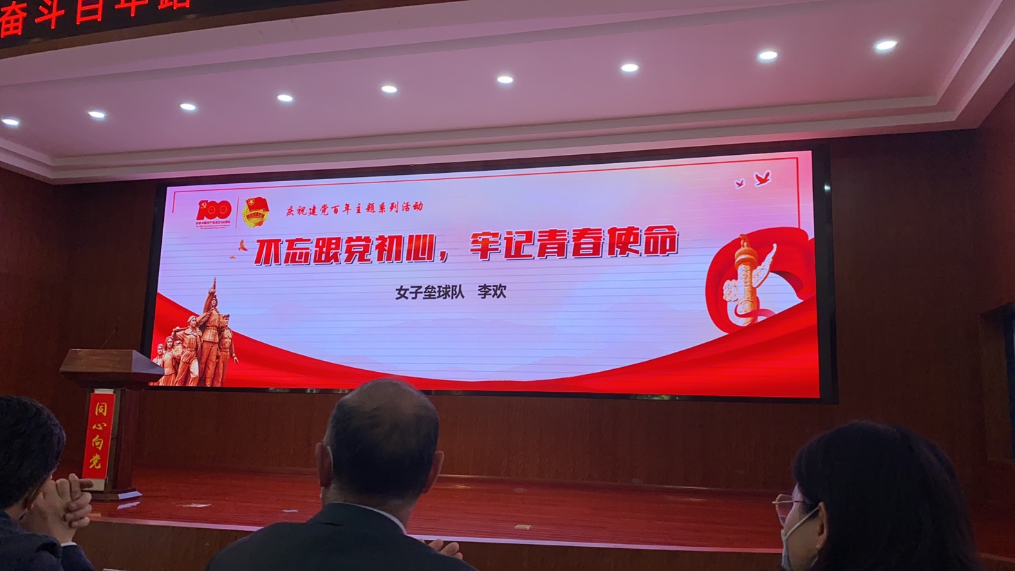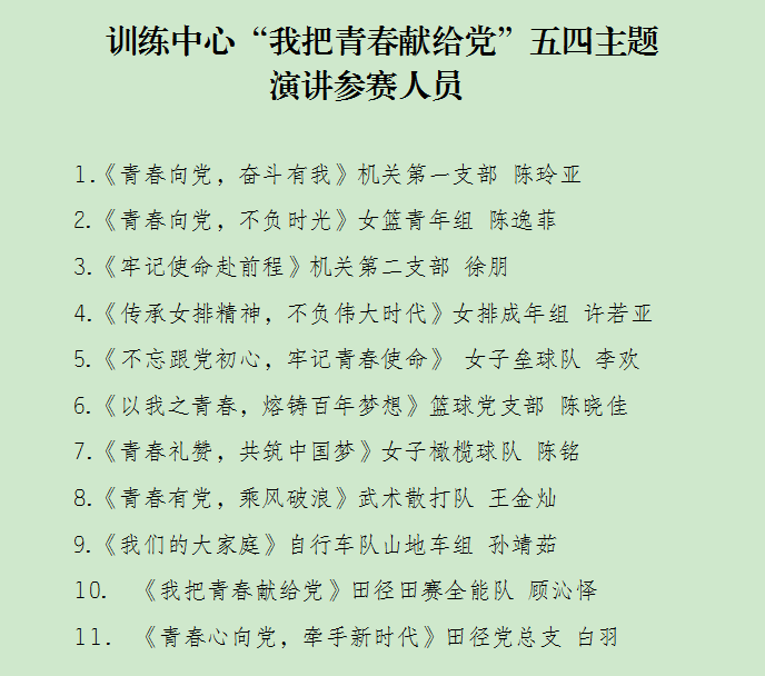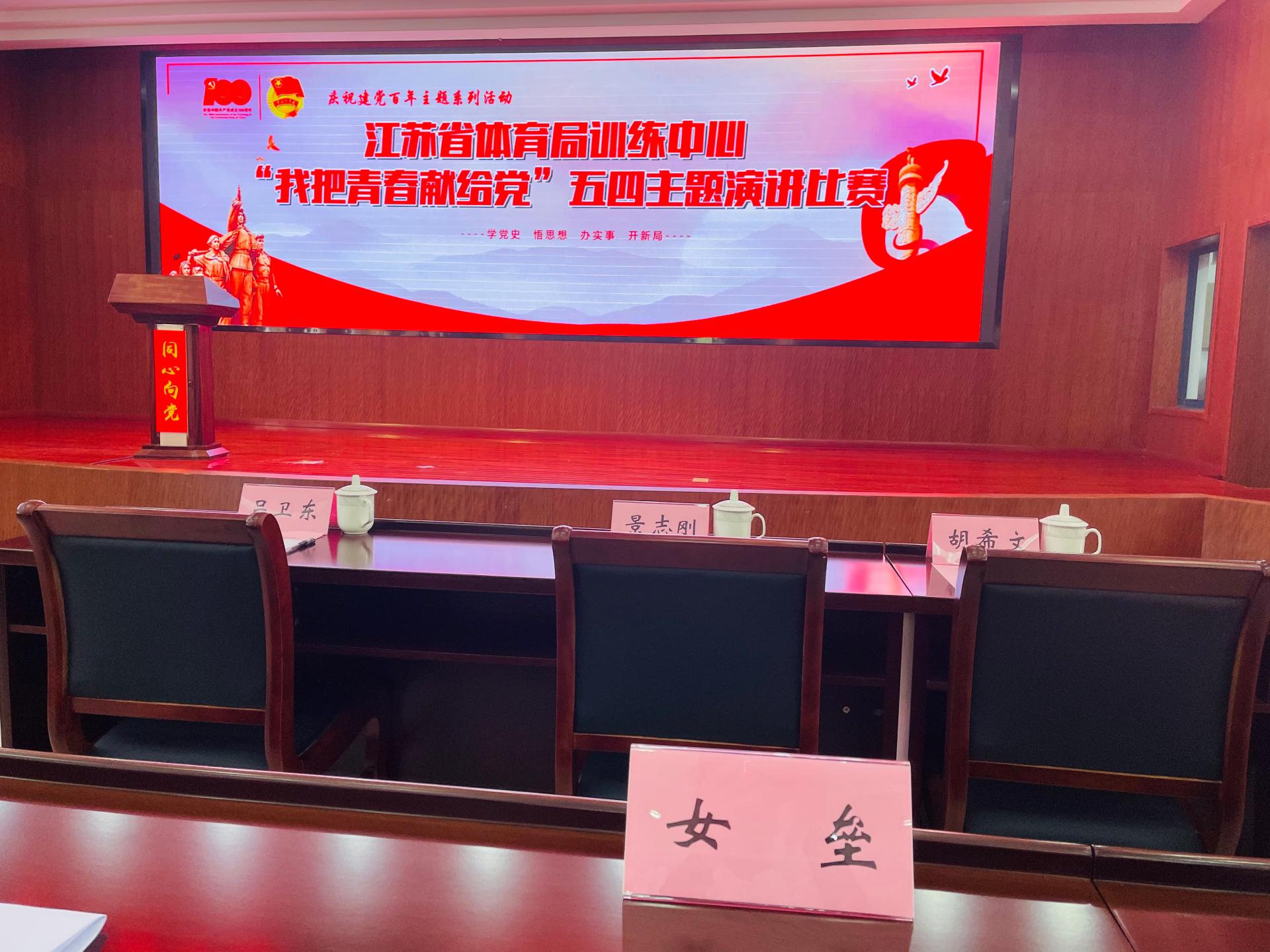 4月30日上午,江苏省体育局训练中心举行庆祝建党百年系列主题活动——“我把青春献给党”五四主题演讲比赛,来自体育局训练中心内7个项目中心及5个党支部的全运会冠军、青年党员和青年团员共11名选手参加,太阳成集团tyc234cc江苏女垒党支部选派队长李欢参加这次比赛,她以《不忘跟党初心,牢记青春使命》为题,在众多参赛选手脱颖而出,荣获此次演讲比赛第一名。