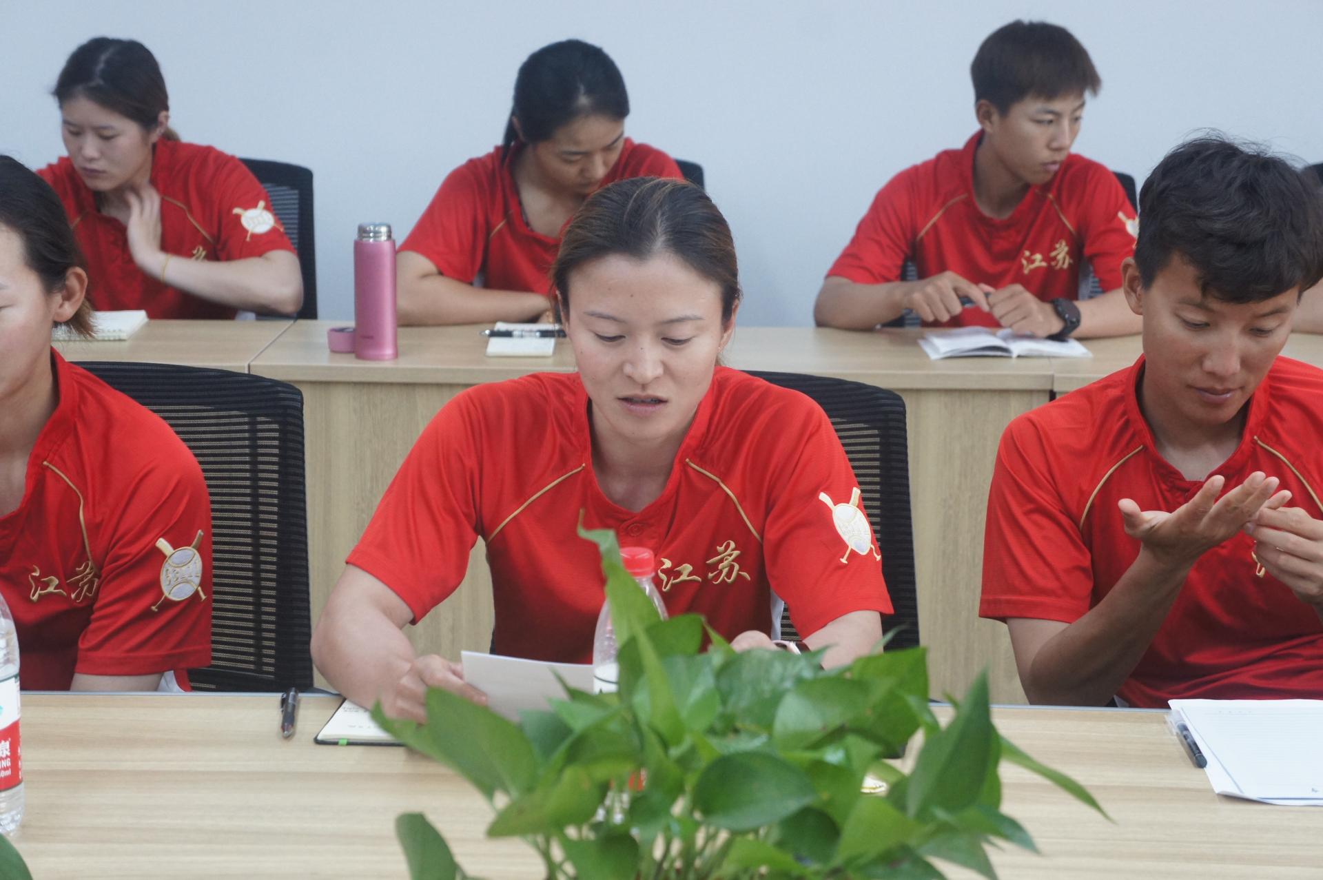 张天峰经理希望大家要继续发扬江苏女垒精神,进一步提高责任意识,全力做好备战工作。面对困难和挑战,要有“贡献有我,责任在我,担当靠我”的思想境界,通过不断地努力和团队协作战胜各种困难。张经理希望大家要进一步树牢安全意识,做好兴奋剂预防和疫情防控工作,训练中防伤防病,确保健康参赛,圆梦陕西。