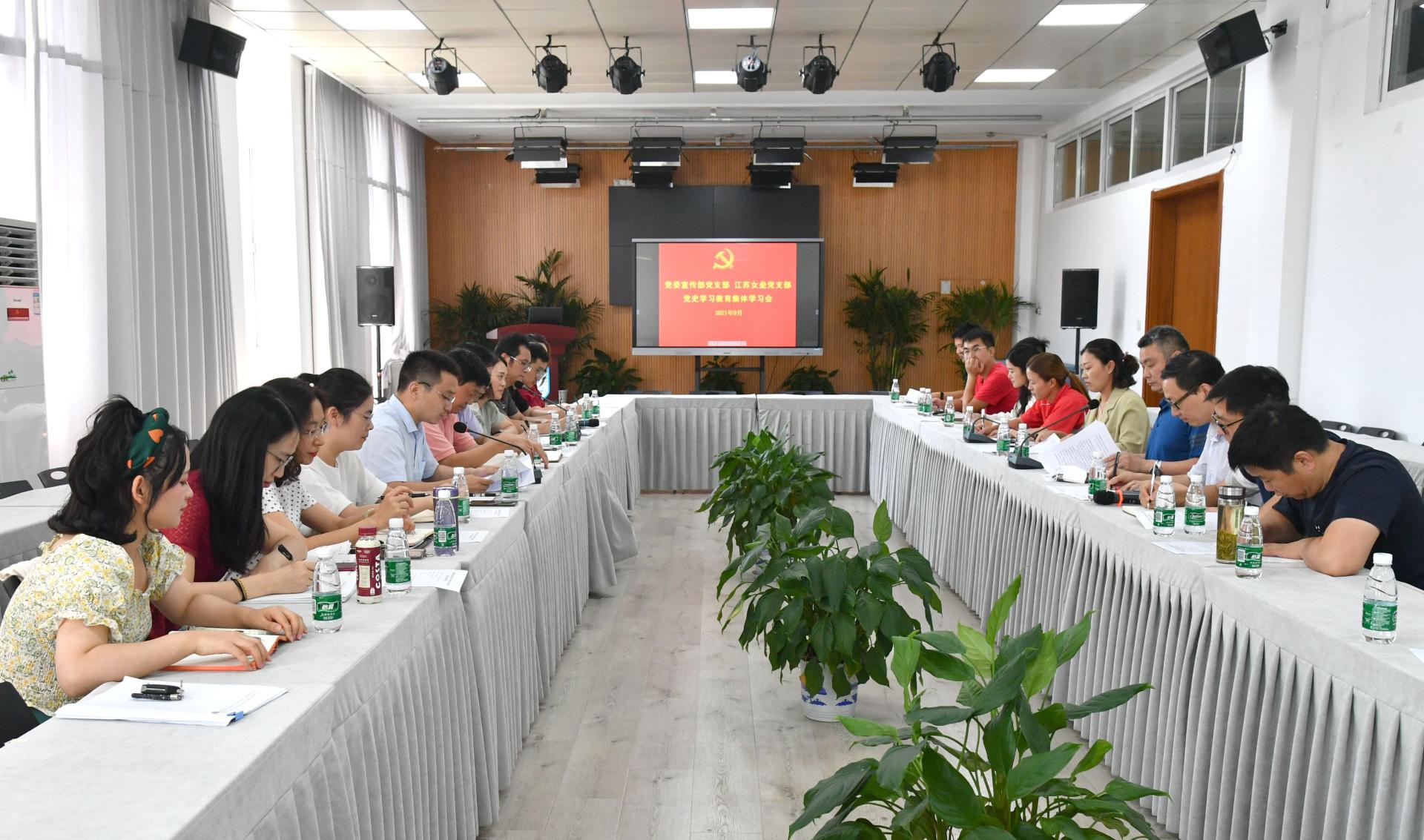 9月23日下午,校部机关党委宣传党支部、太阳成集团tyc234cc江苏女垒党支部在亚青教工之家联合举行党史学习教育集体学习会。