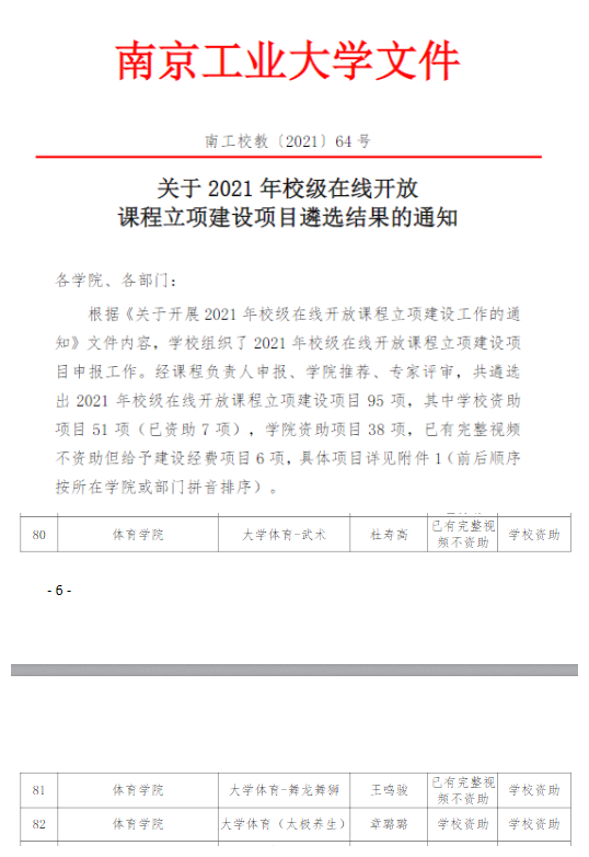 根据校教务处《关于开展2021年校级在线开放课程立项建设工作的通知》文件,公司组织开展了2021年校级在线课程立项建设项目申报工作,经课程负责人申报、公司推荐、专家评审后,共遴选出2021年校级在线开放课程立项建设项目95项。公司杜寿高、王鸣骏章璐璐三位老师荣获课程立项!