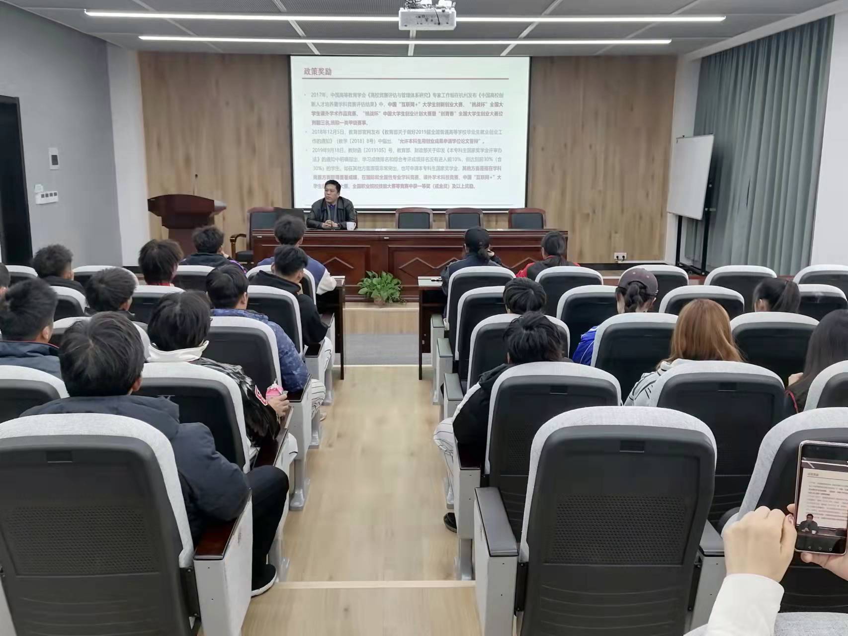 尚老师从“互联网+”大赛作为切入点,围绕创业意识和创新创业能力的培养,向同学们详细阐释了创新创业相关赛事的参赛要求、赛道奖项设置、项目类型、产业命题赛道、备赛要点等相关知识,并从评委角度对如何准备大赛提出了建设性意见。随后,尚老师结合自身多年指导经验,分享了自身工作历程和个人学习心得,鼓励同学们多看书、多搜集信息,多运用信息,多与人交流,不断增加人生的厚度与宽度。