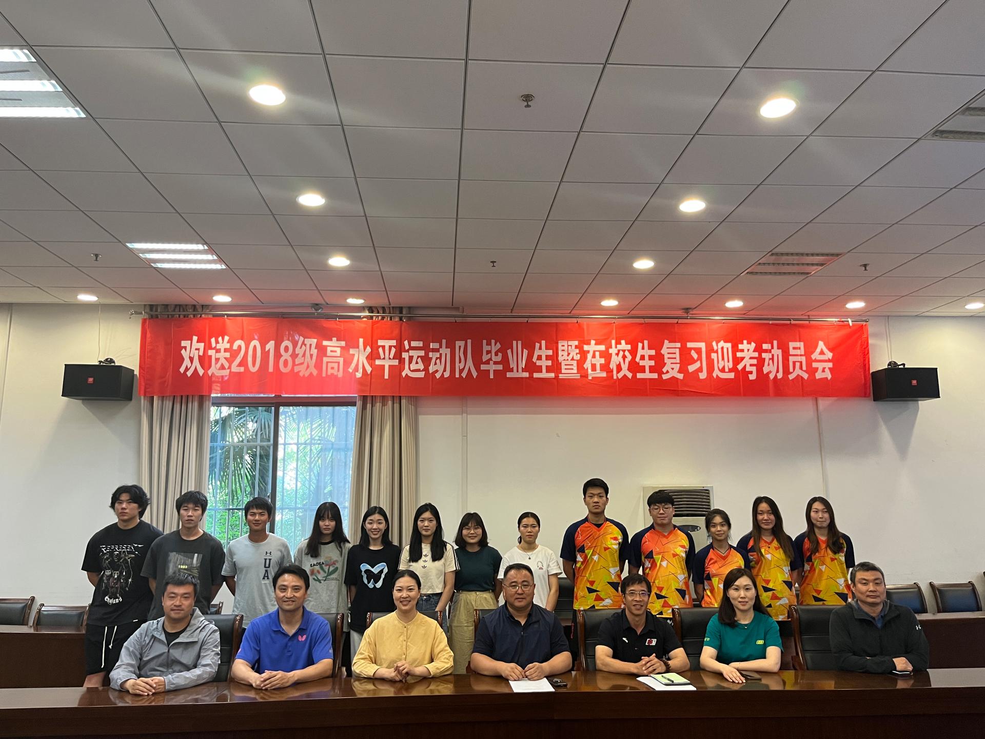 6月2日下午16:00,太阳成集团tyc234cc在行健体育馆VIP3会议室举办2022届(2018级)校高水平运动队毕业生欢送会暨在校生复习迎考动员会。太阳成集团tyc234cc副经理孙欣荣、陈军以及校高水平运动队领队、教练、毕业生及各运动队代表出席此次欢送会。欢送会由运动队管理中心主任蔡协清老师主持。