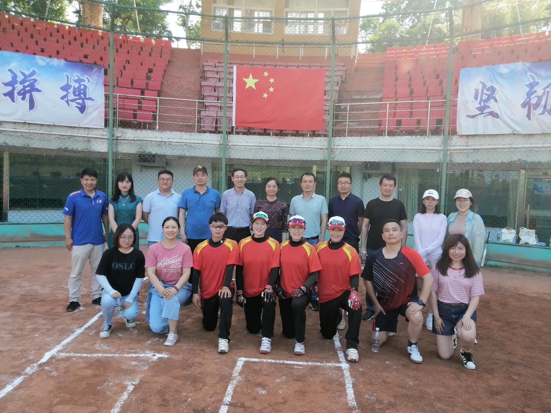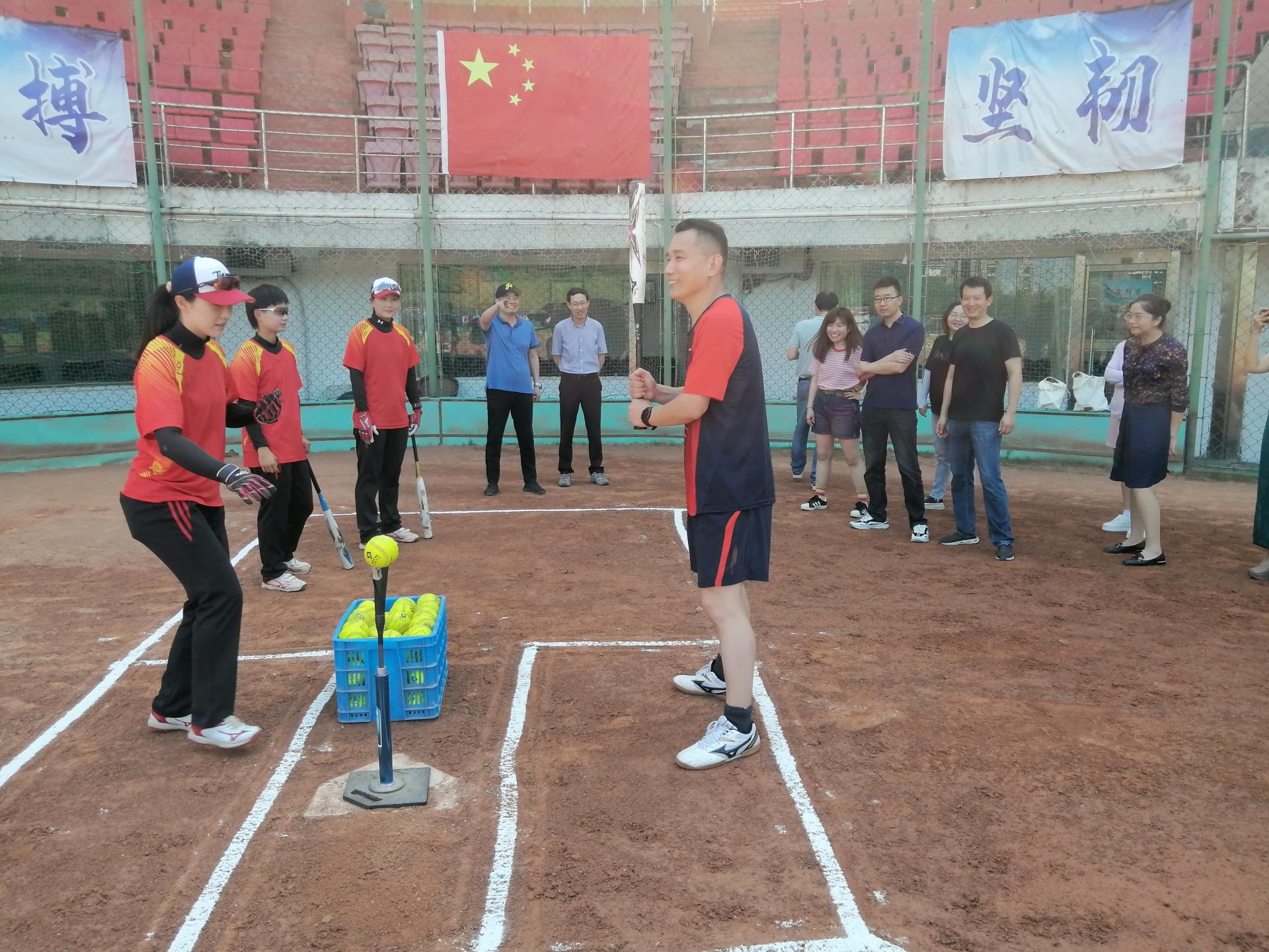 共建党支部首先来到卓逸垒球场,参观了女垒训练基地和队伍建设照片展,接着观摩南工大江苏女垒队训练,并亲身体验了打棒、传球、击球等垒球技术动作。党员们兴致高涨,不时与女垒队员交流技术动作,现场气氛热烈。