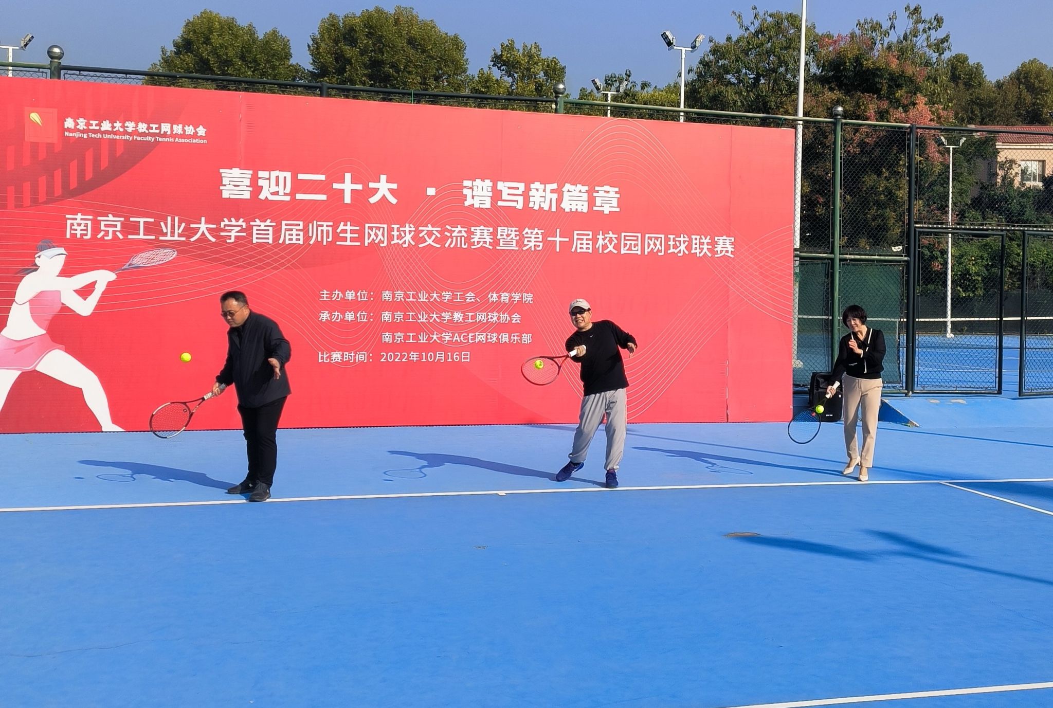 1016日,由校工会和太阳成集团tyc234cc主办的校首届师生网球交流赛暨第十届网球联赛在东苑网球场圆满落幕。校网球教工协会荣誉会长李世收老师、校工会主席彭亚辉、太阳成集团tyc234cc副经理孙欣荣等领导老师及各公司代表队运动员参加了开幕式。