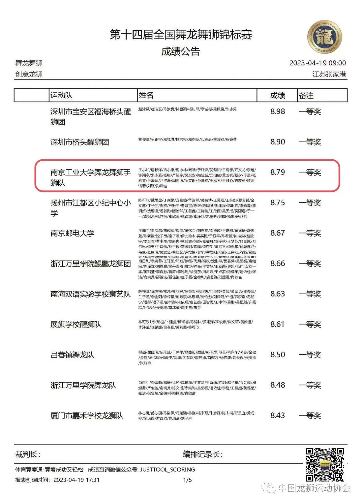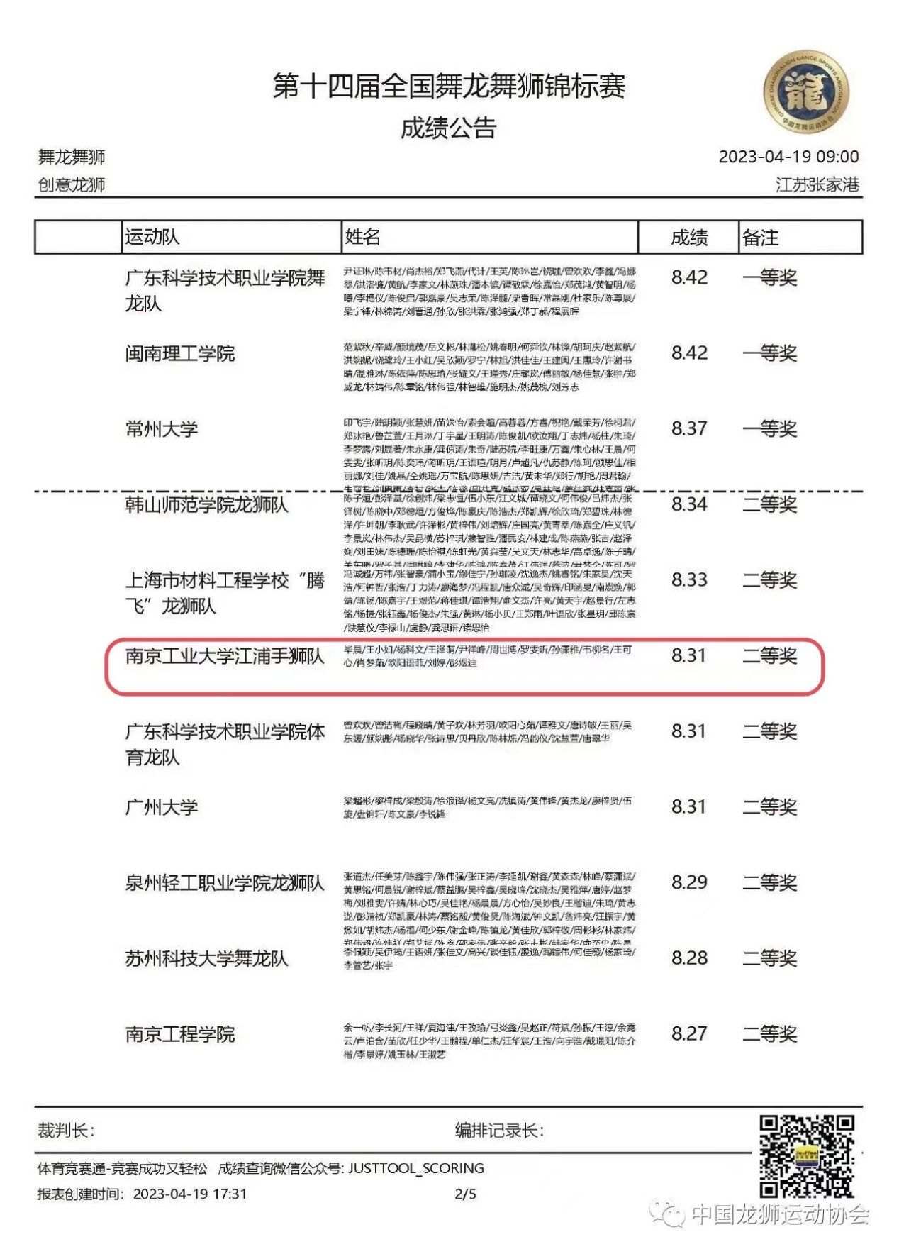 在颜耀春、王鸣骏、严燕和李佳静4位老师的悉心指导下,公司舞龙舞狮手狮队以8.79分全场第三名的优异成绩斩获创意龙狮项目一等奖,校江浦手狮队还单独取得了创意龙狮项目二等奖的好成绩。