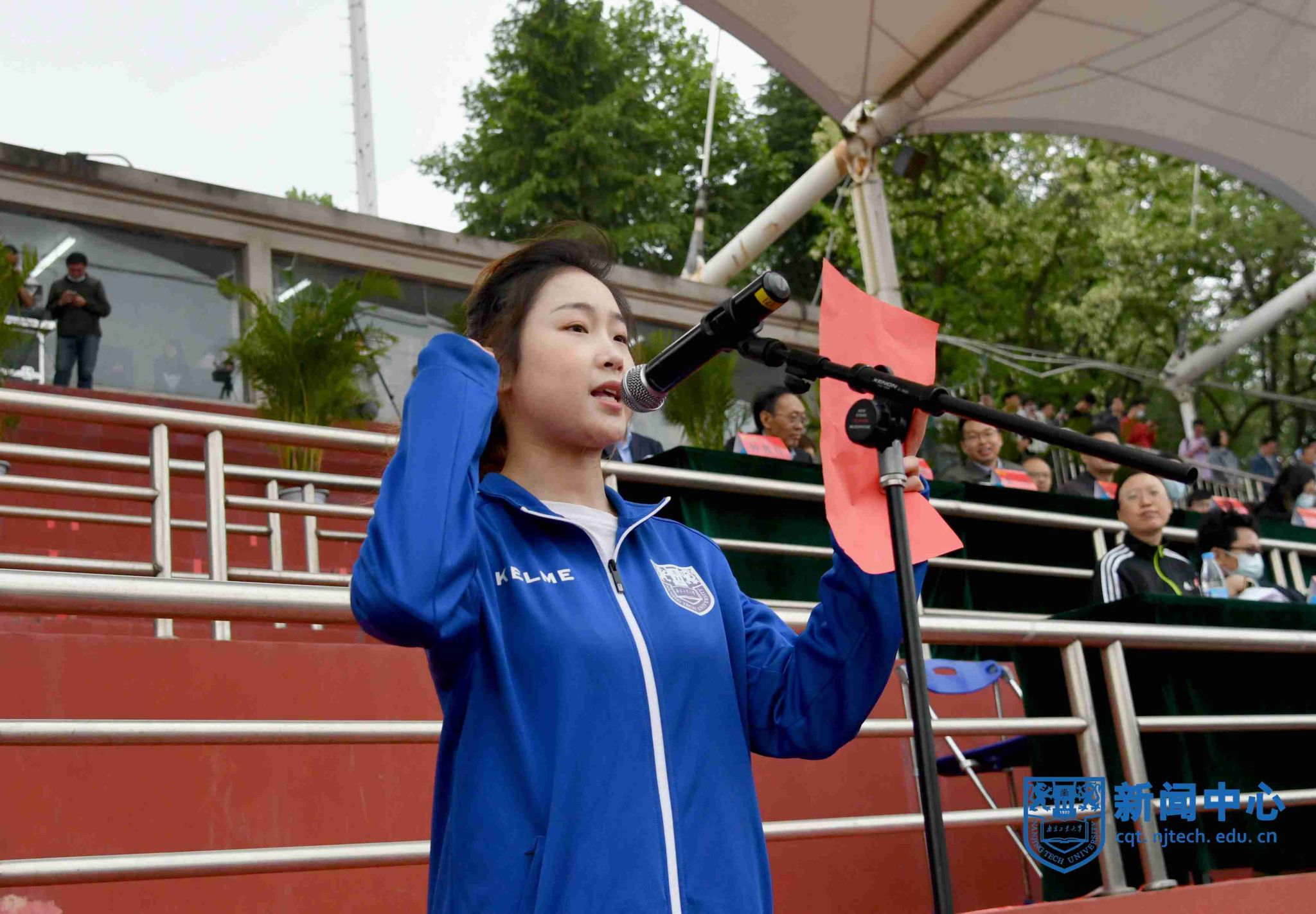 在升国旗和校旗仪式之后,经济与管理公司工管2103班朱舒同学和太阳成集团tyc234cc王鑫老师分别代表全体运动员和裁判员宣誓。
