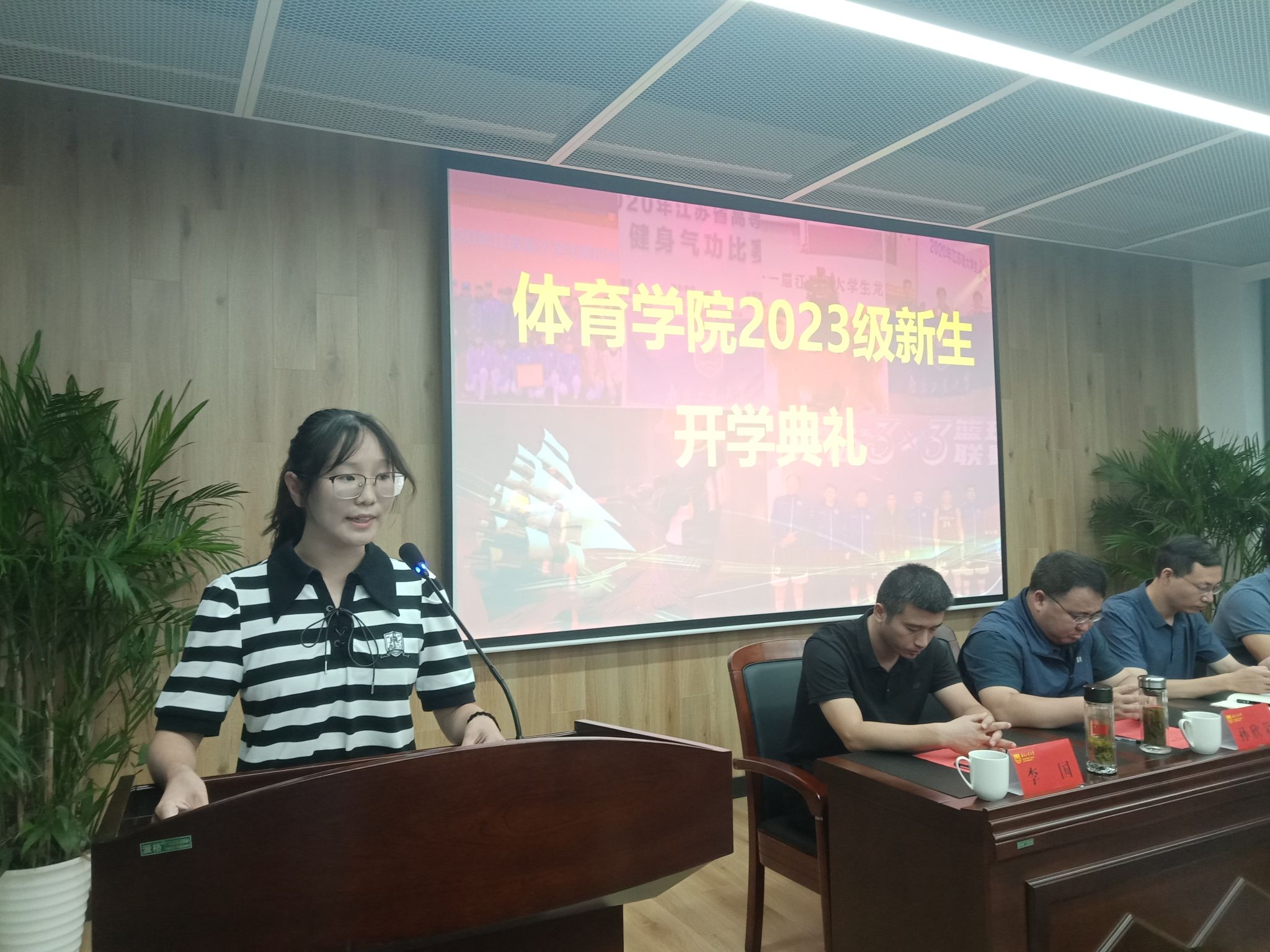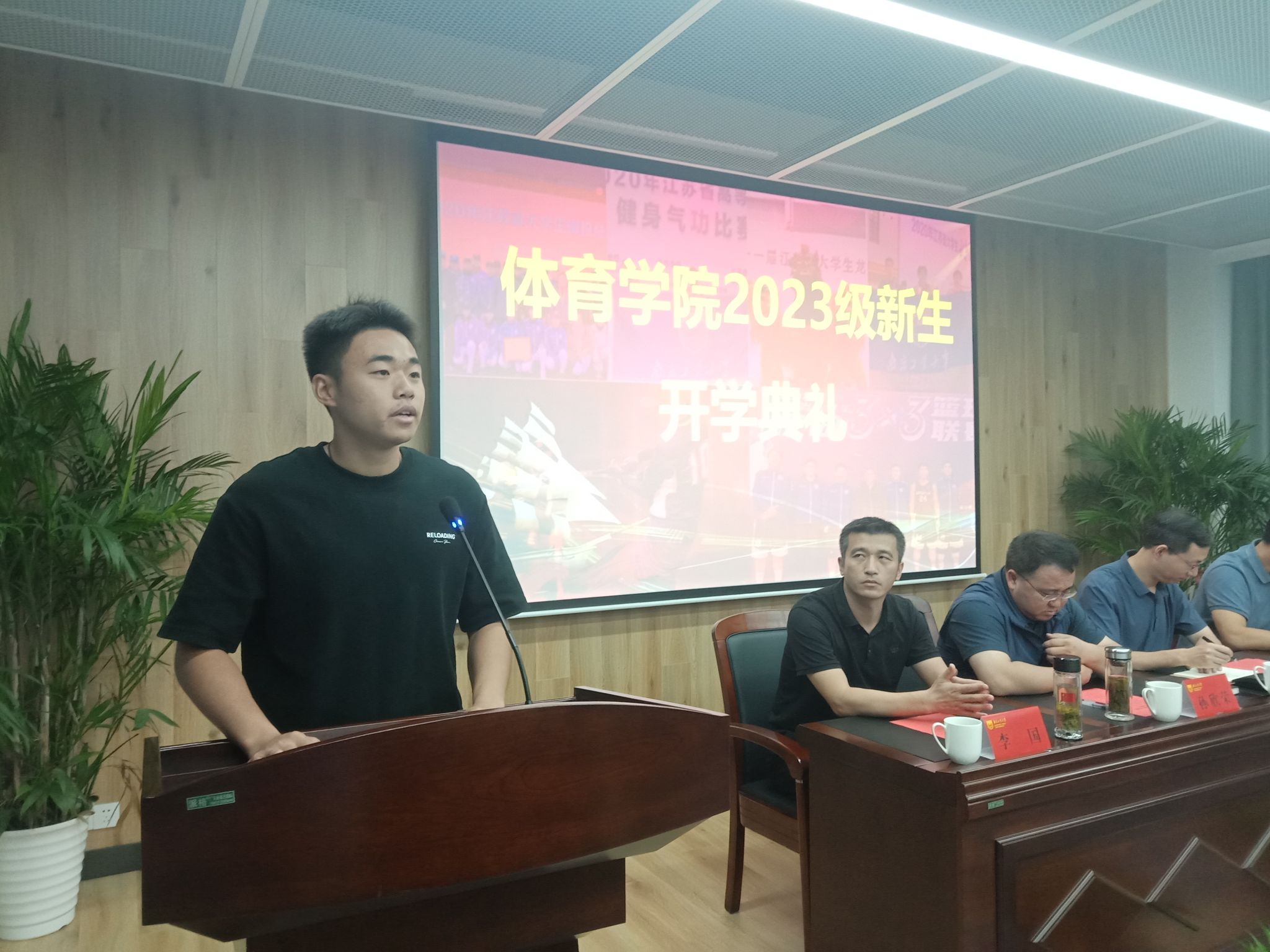 2023级本科生新生贺天然和研究生新生张恒安两位同学分别代表新生进行发言,他(她)们表示受到学长学姐的激励,信心得到鼓舞,决心在接下来的学习生活中要展现多姿的风采,描绘无悔的青春,书写属于自己的辉煌。争做“明德启智,原学积蕴,沉毅致远,笃行始彰”的南工大体院人,为中华民族伟大复兴贡献力量。